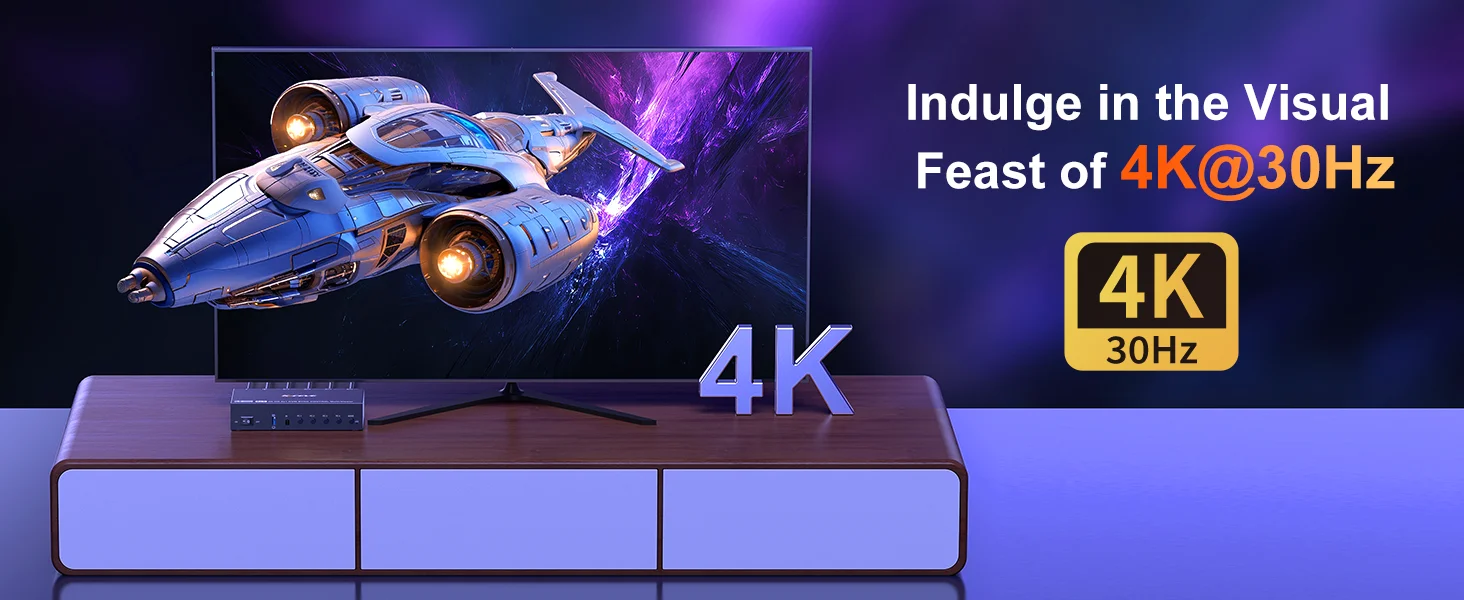 【맑고 선명한 4K】양식, 디자인, 비디오 또는 게임 등 최대 4K@30Hz 해상도를 지원하는 HDMI 스위처 4 in 1 out을 사용하면 모든 세부 사항을 쉽게 볼 수 있어 최고의 시각적 세계를 즐길 수 있습니다.