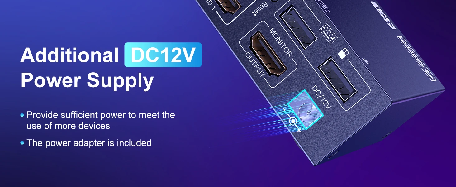 【플러그 앤 플레이 단순성】드라이버가 필요 없는 설정: 케이블을 연결하기만 하면 시작됩니다.각 컴퓨터는 USB 케이블 1개와 HDMI 케이블 1개를 사용하여 4포트 KVM 스위치에 연결되어야 합니다.충분한 전력을 공급하기 위해 DC12V POWER LOGIC 공급 장치가 포함되어 있습니다.