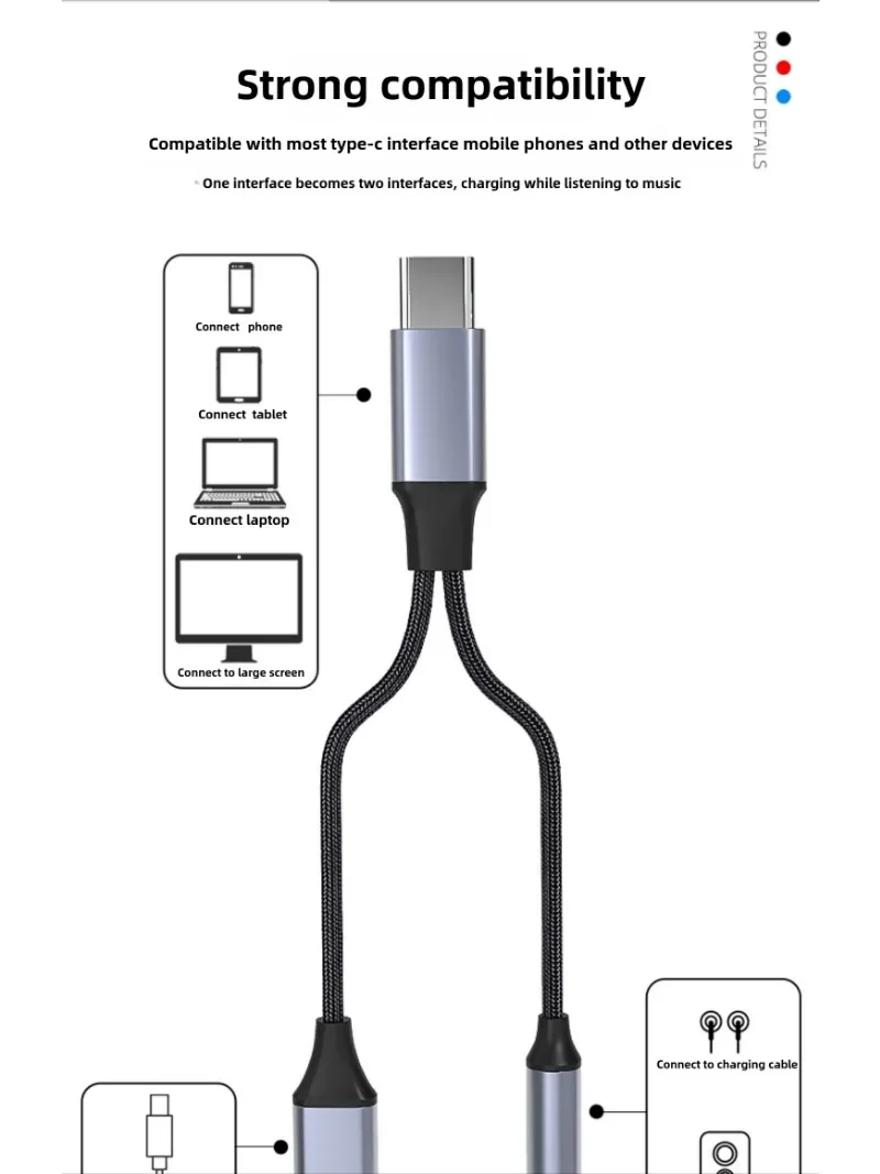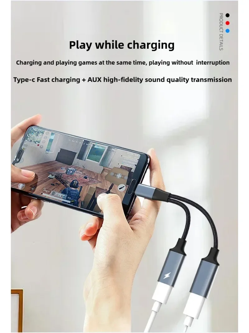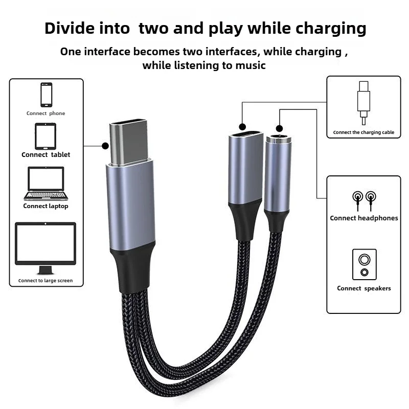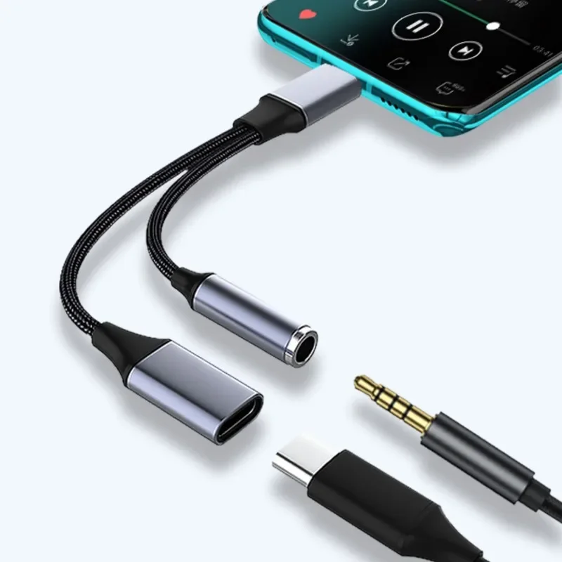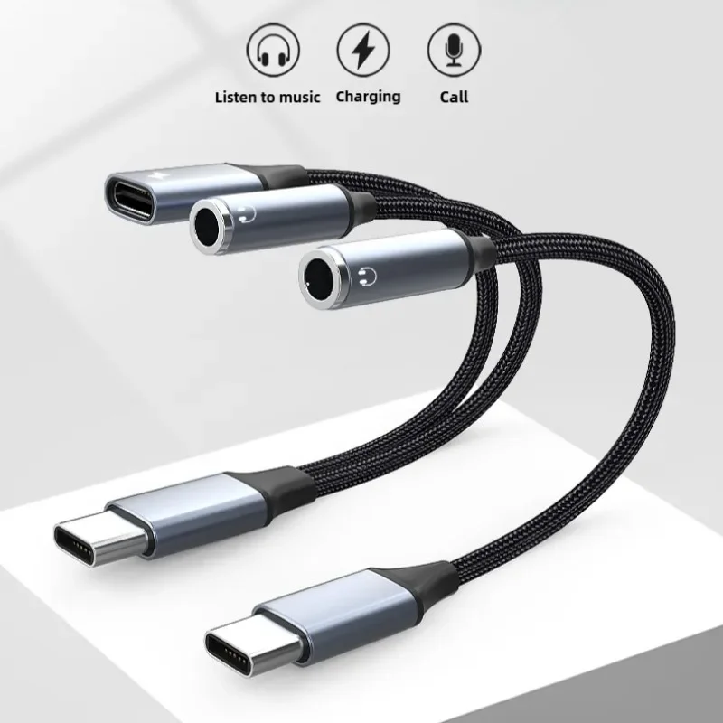 2 IN 1 USB C - 케이블 잭 동글 0 및 헤드폰 오디오 AUX 5MM 포트 충전기 고속 충전 코드 3 PD 어댑터