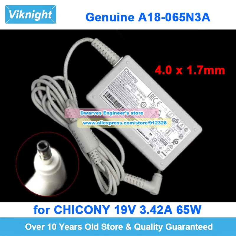 화이트 오리지널 A18065N3A AG19034C291 CHICONY 19V 3.42A 65W POWER LOGIC 공급 장치 4.0x1.7mm 용 노트북 충전기