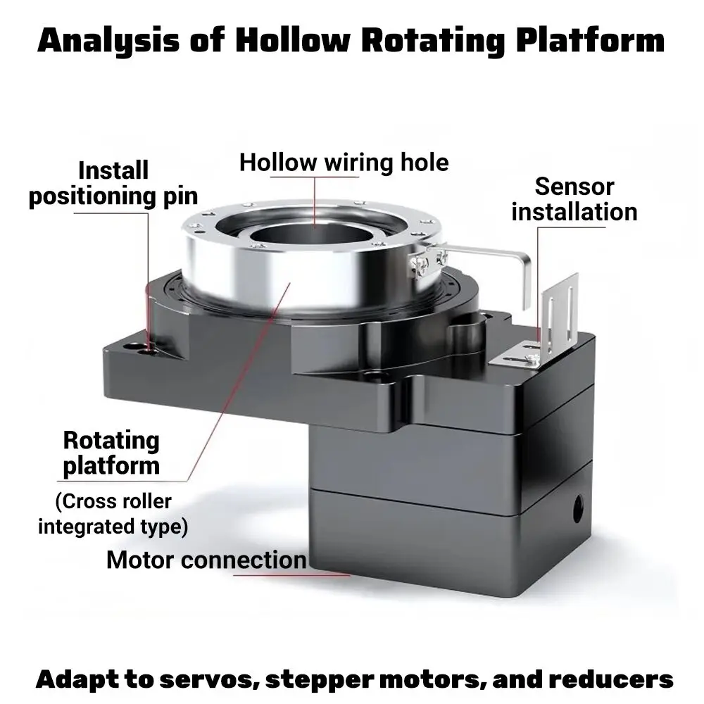 중공 회전 플랫폼은 , 감속기 및 위치 지정 시스템을 통합한 정밀 회전 장치로 CNC 공작 기계, 산업용 로봇 및 자동화 생산 라인용으로 특별히 설계되었습니다.핵심 장점은 높은 정밀도, 높은 강성 및 높은 비용 성능입니다.중공 구조 설계, 정밀 전송 시스템 및 모듈식 구성을 통해 기존 캠 분배기 및 DD 모터를 대체하는 선호하는 방식이 되었습니다.