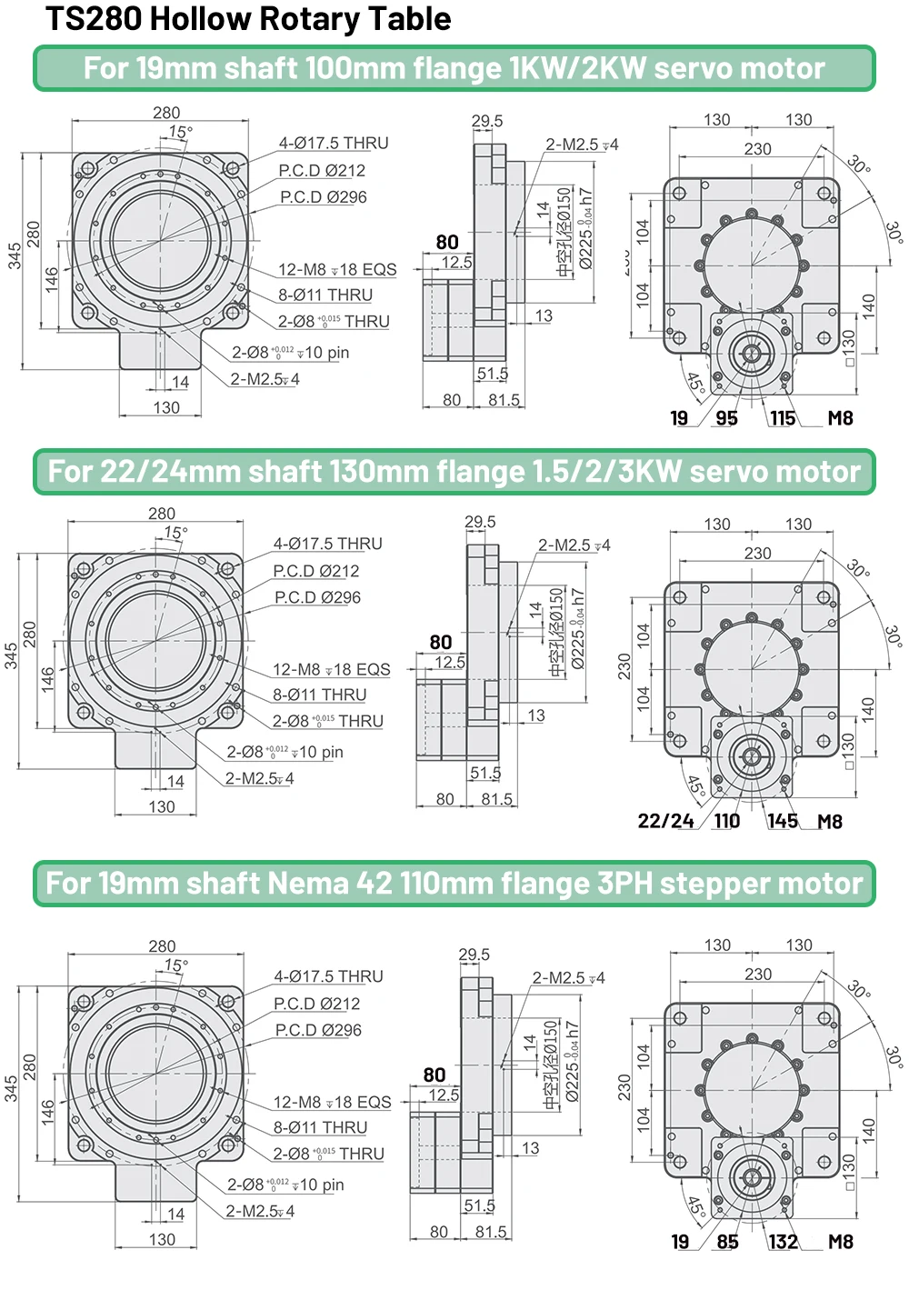 | SERVO 모터에 적응 | 8mm 샤프트 50W/100W 40mm SERVO | 11/14mm 샤프트 200W/400W/ 600W 60mm SERVO | 11/14mm 샤프트 200W/400W/600W 60mm SERVO | 11/14mm 샤프트 200W/400W/600W 60mm SERVO | 19mm 샤프트 750W/1KW 80mm SERVO | 19mm 샤프트 1KW 2KW 100mm SERVO; 22/24mm 샤프트 1KW3KW 130mm SERVO | ||||||