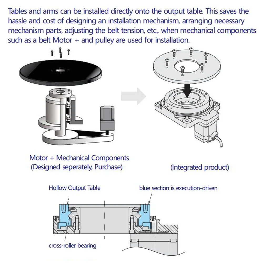 5.장치의 작업대와 기계 팔은 중공 회전 플랫폼의 턴테이블에 직접 설치할 수 있습니다.풀리와 같은 메커니즘 부품을 사용하는 것에 비해 메커니즘 설계, 부품 배치, 벨트 상태 조정 등의 작업 시간과 비용을 줄일 수 있습니다.