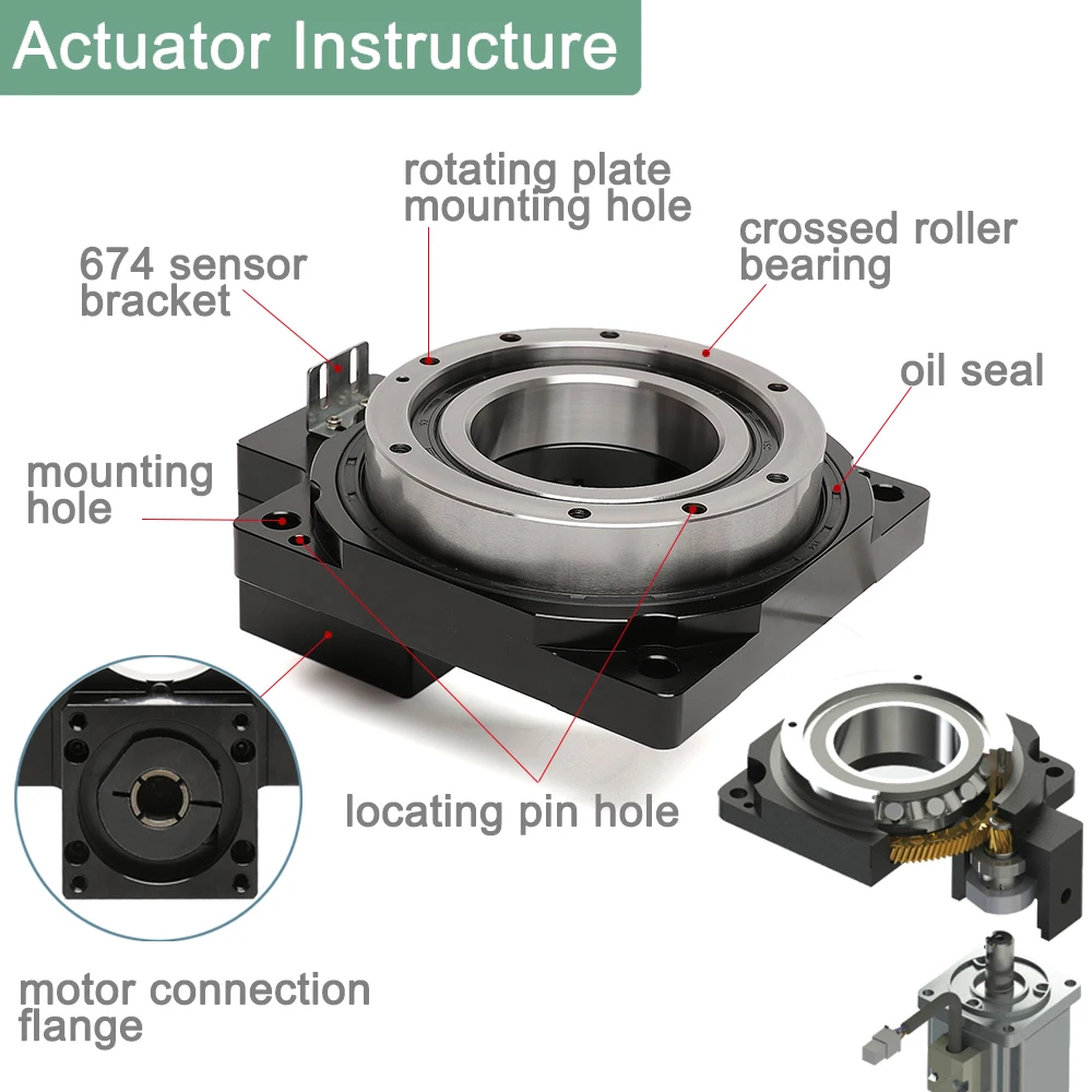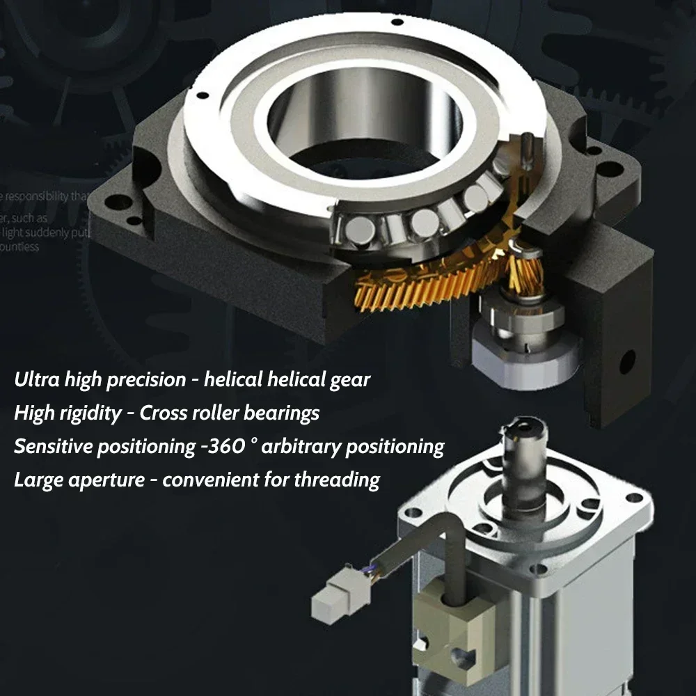 2.제품 사용 시 측면 힘 및 기타 문제를 고려하여 크로스 롤러 베어링을 채택하고, 중앙에 전복 방지 안정 링을 장착했습니다.사용 중 측면 힘 하중을 더 잘 견딜 수 있도록 합니다.