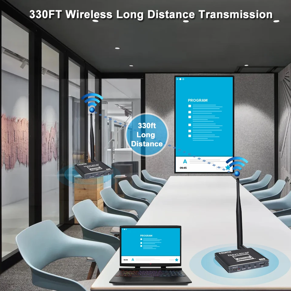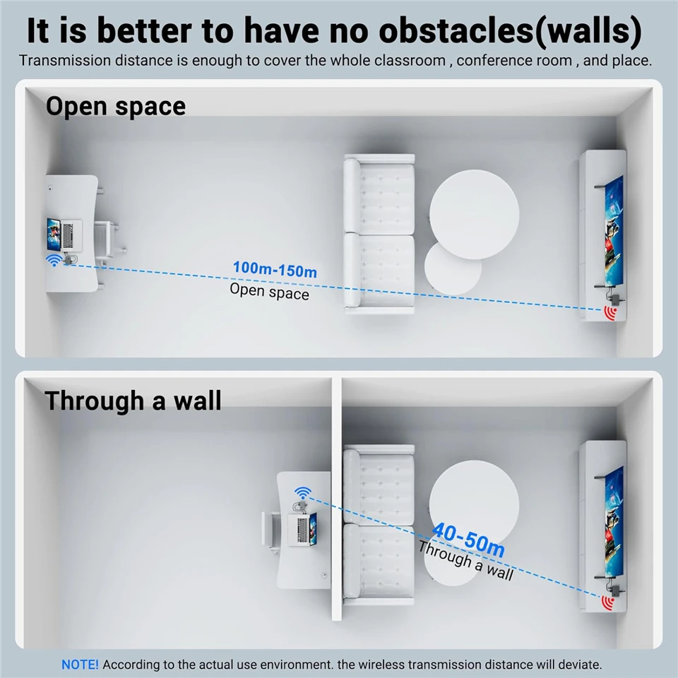이 무선 HD 비디오 전송 솔루션은 가족 오락, 사무실 프리젠테이션, 강의, 교육, 의료, 파티, 컨퍼런스 등에 널리 적용 가능합니다.