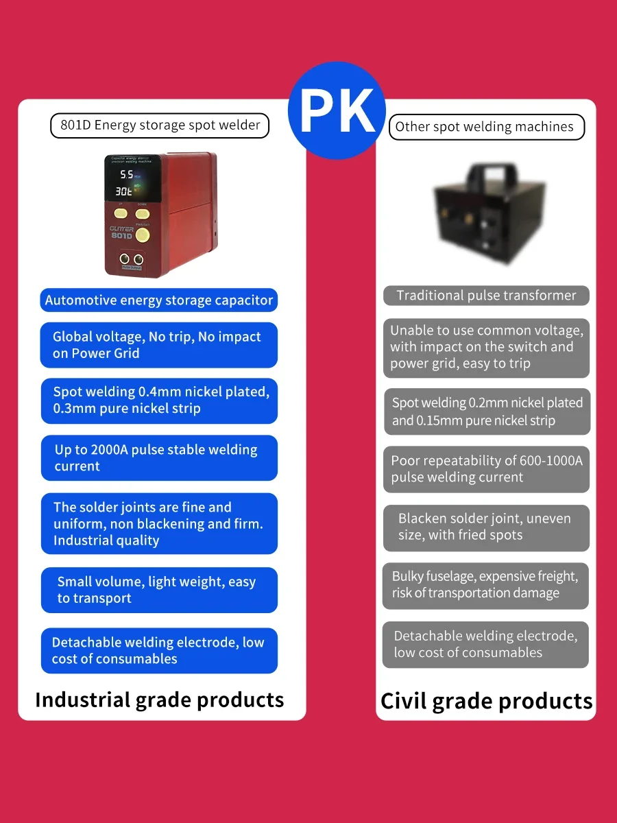 10.이중 용접 도구 모드의 결합을 개척하여 사용자가 다양한 범위에서 배터리 또는 금속 부품을 유연하게 사용할 수 있도록 편리하게 만듭니다.