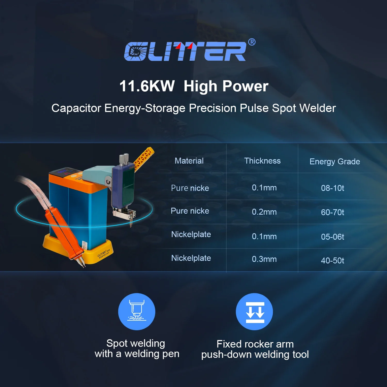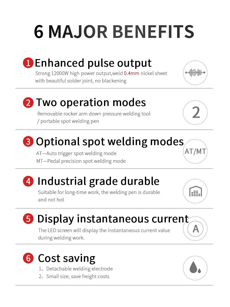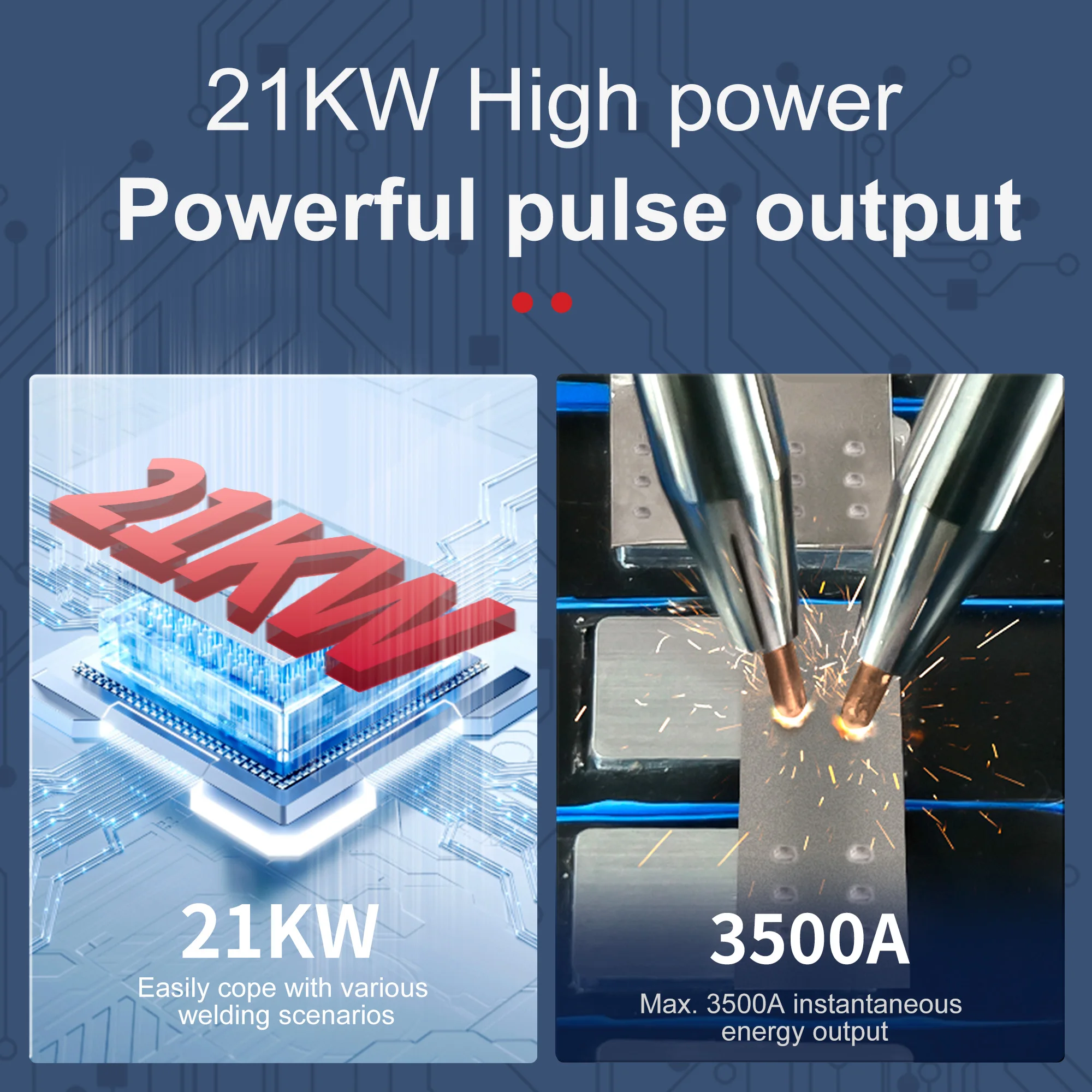 3.용량성 에너지 저장 스폿 용접기는 최대 12KW의 높은 출력을 제공하여 대형 단일 셀 배터리의 용접 요구 사항을 충족합니다.
