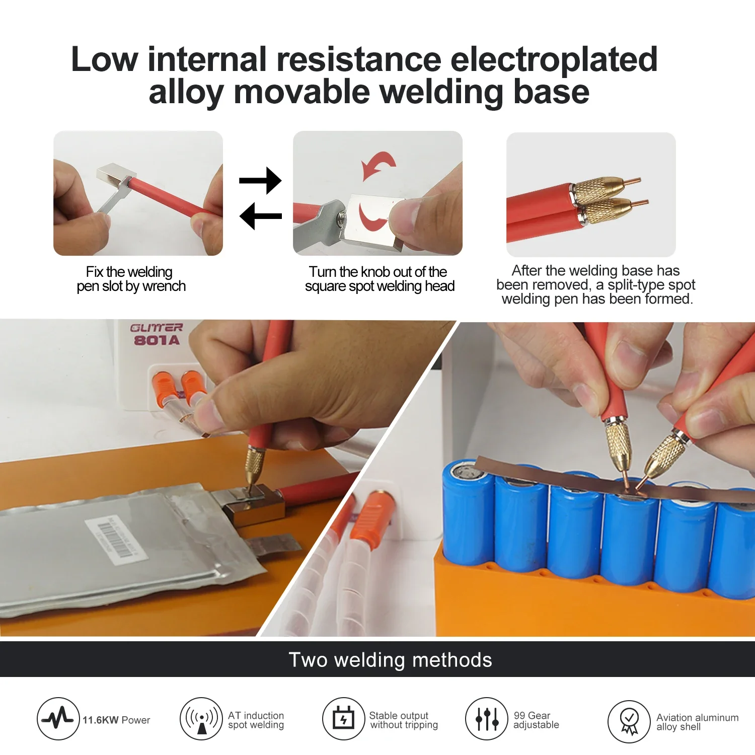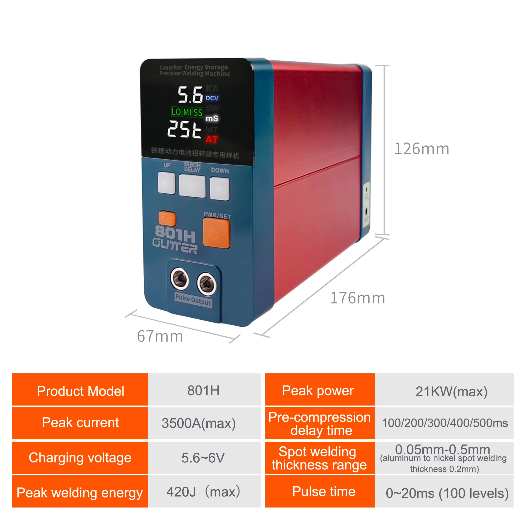 반짝이 801H 3500A DIY 리튬 철 인산염 배터리 니켈 용접 0.050.4mm 용 고전력 펄스 배터리 스폿 용접 기계