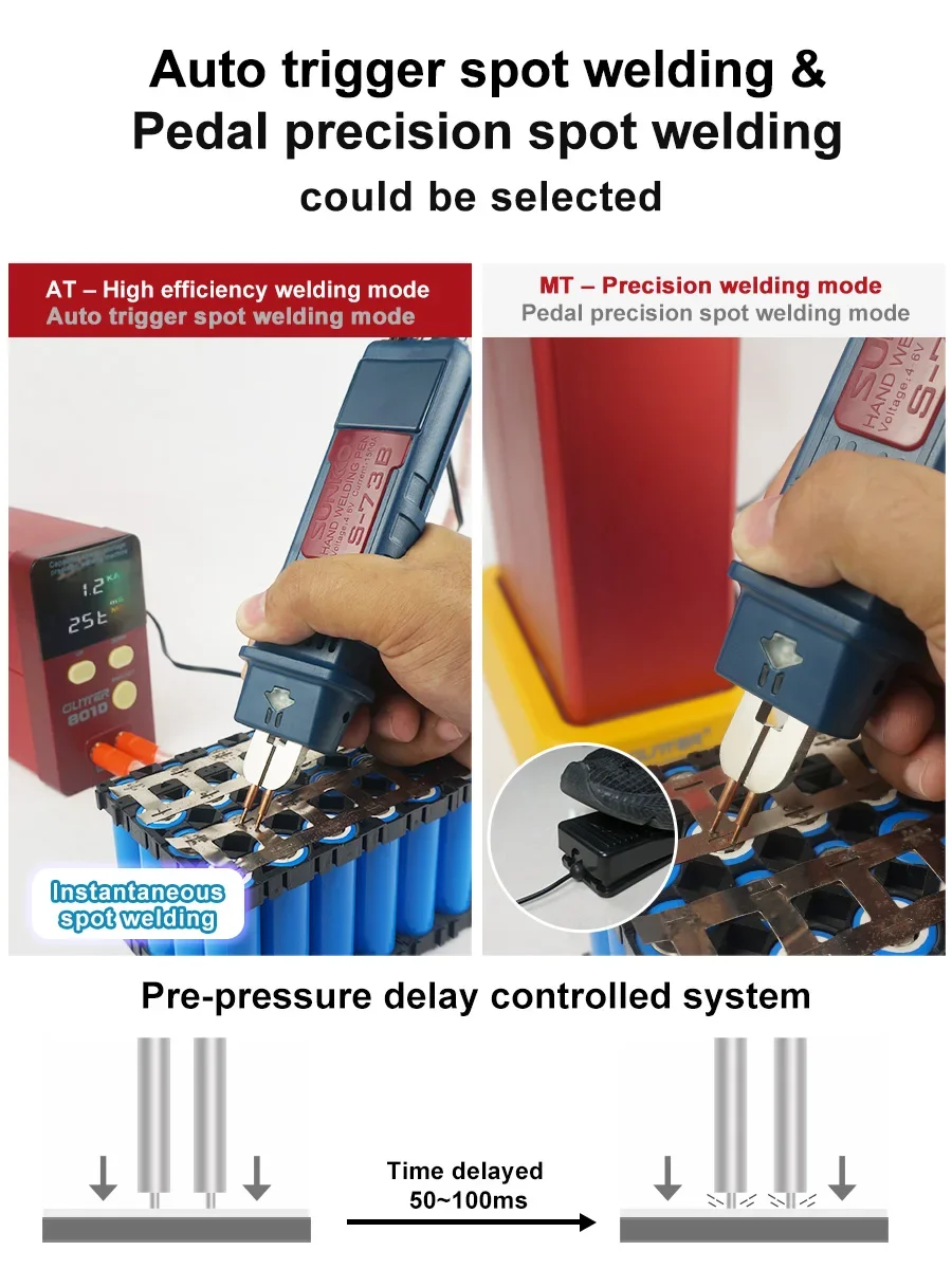 9.듀얼 모드 스폿 용접 트리거를 사용하면 정밀한 스폿 용접과 빠르고 효율적인 용접이 가능하므로 다양한 용접 부품을 용접하는 것이 편리합니다.
