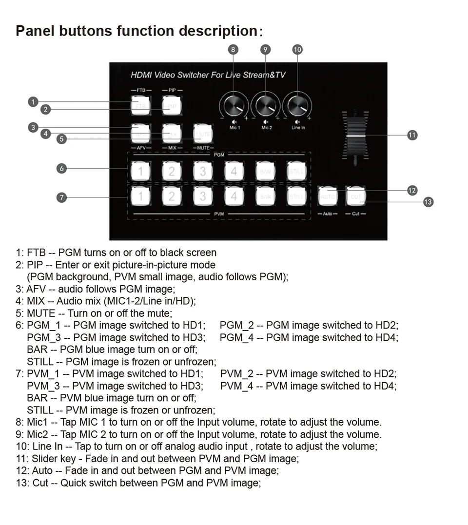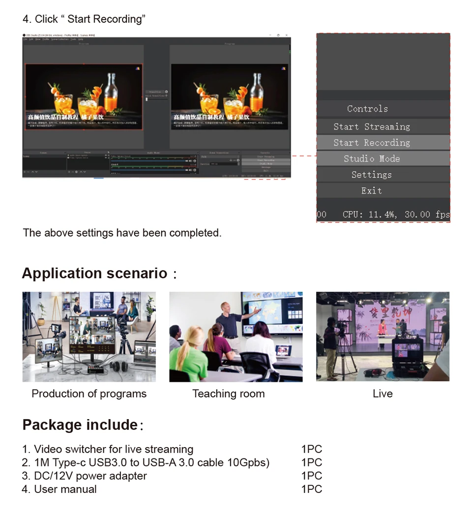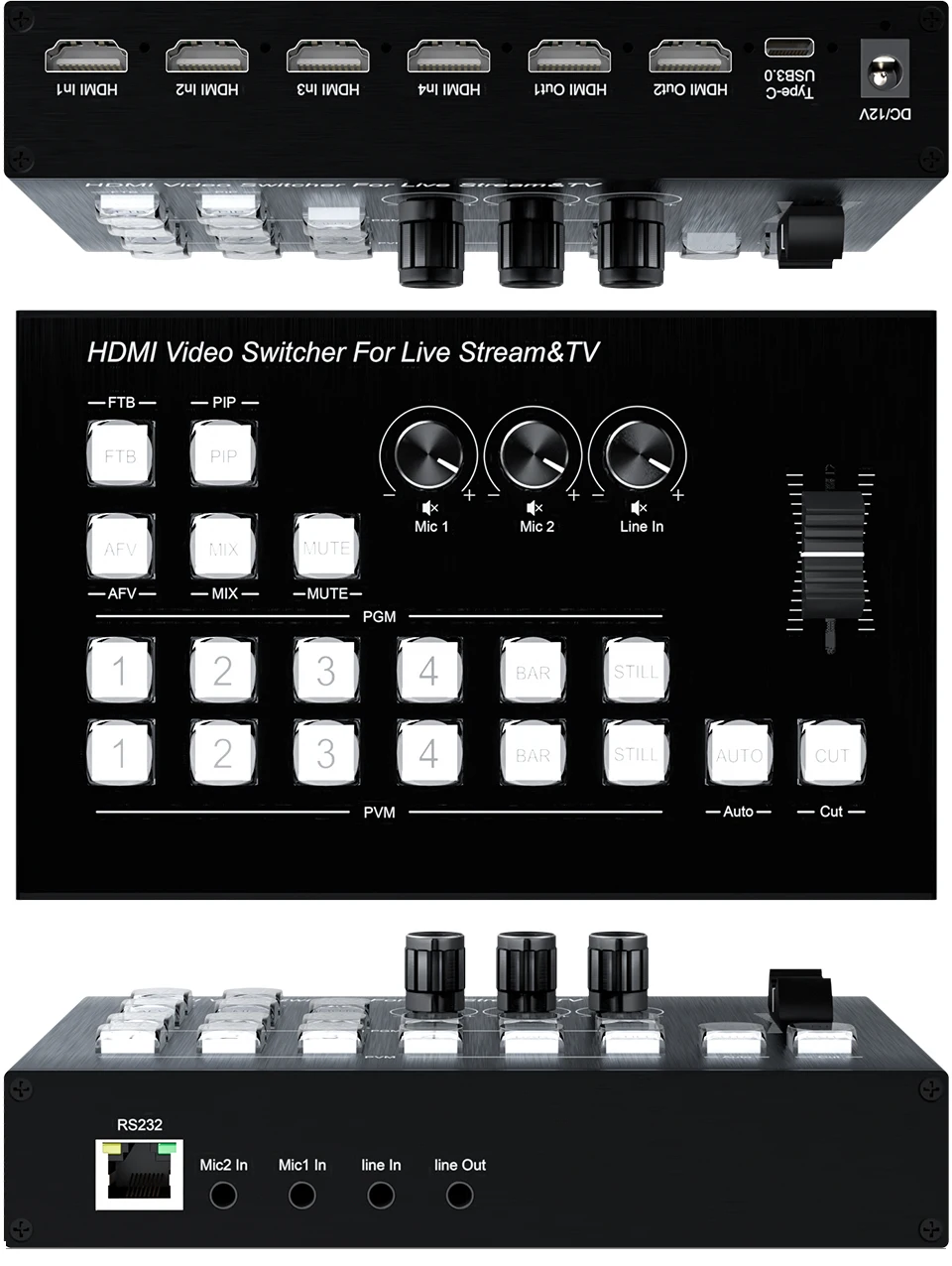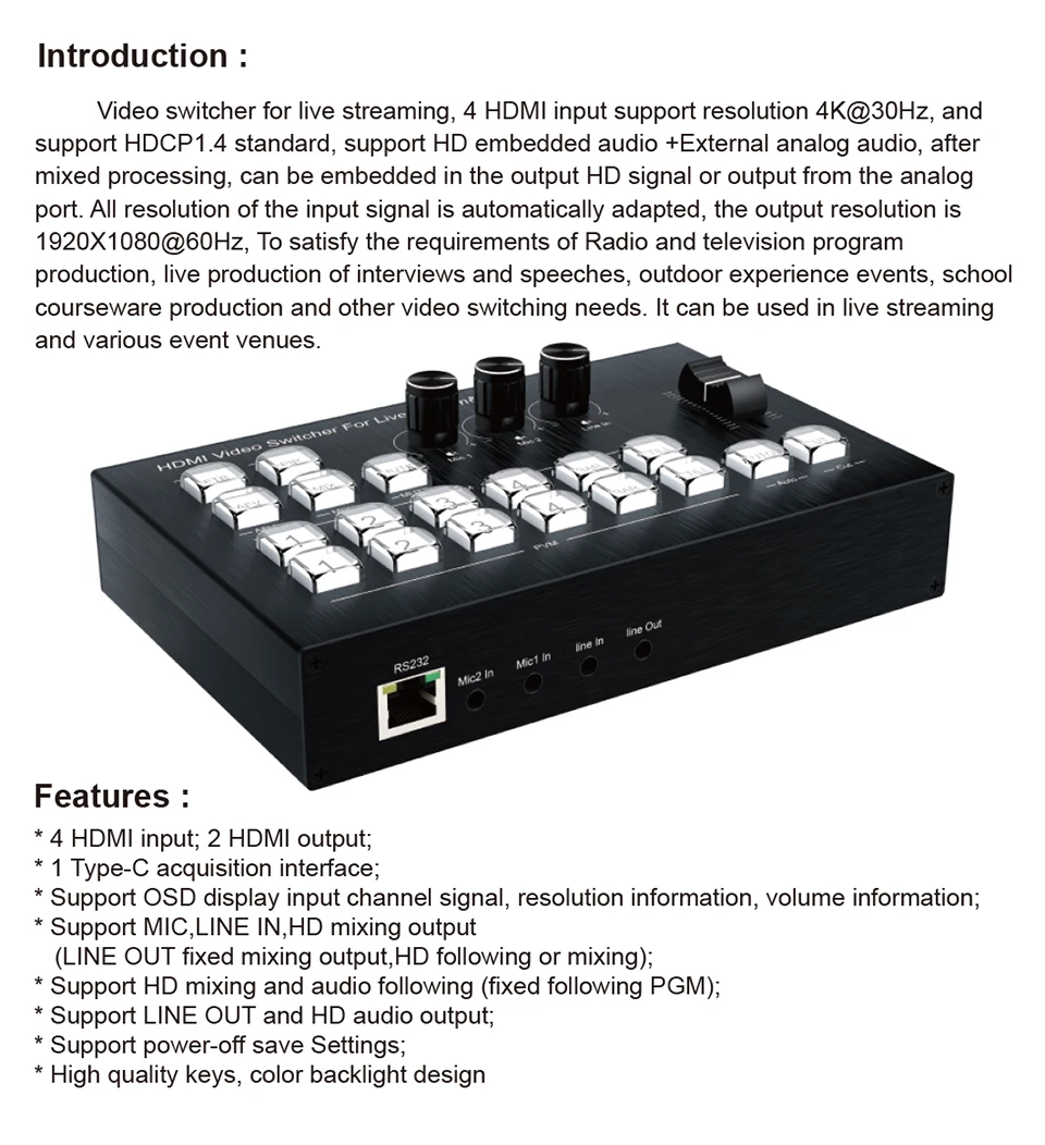 라이브 스트리밍용 비디오 스위처, 4개의 HDMI 입력 지원 해상도 4K@30Hz,