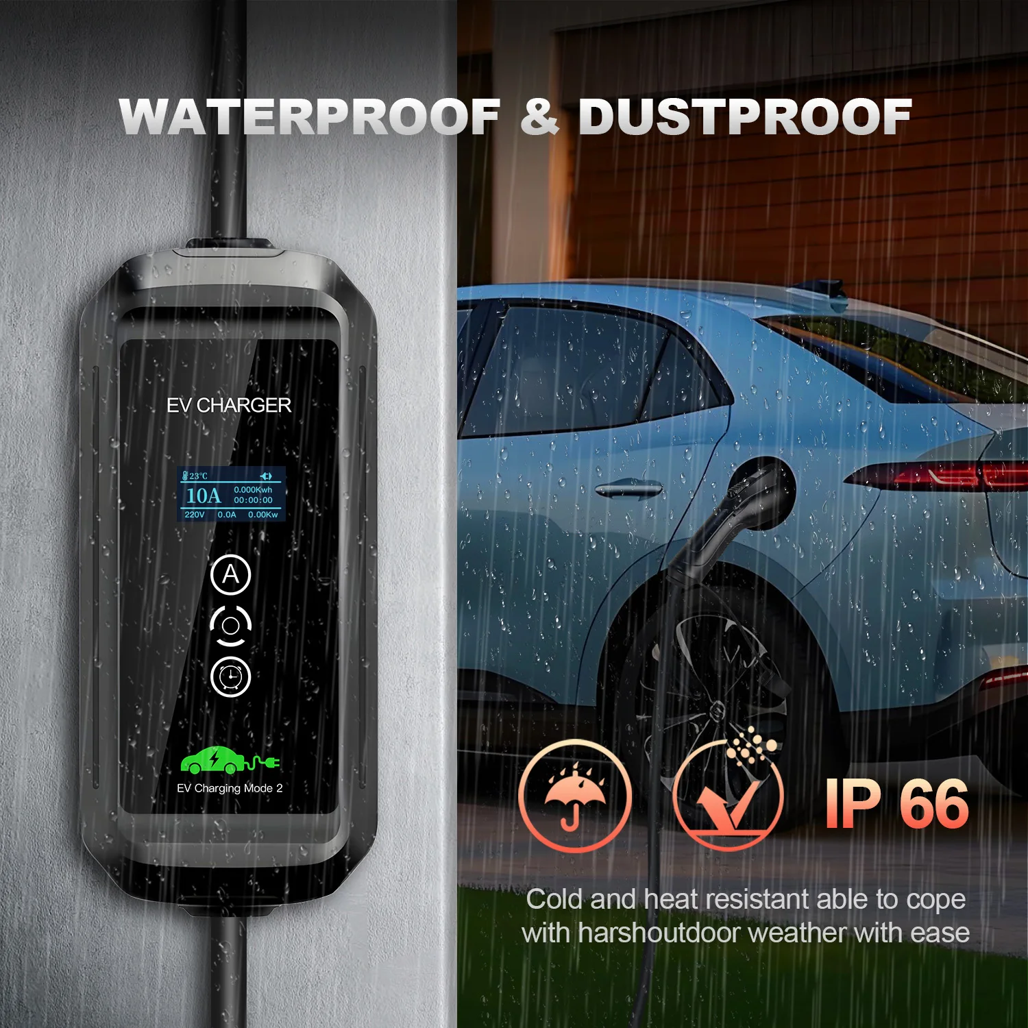 IP66 등급의 이 EV 충전기는 방수 기능이 있어 혹독한 기상 조건에도 견딜 수 있습니다.