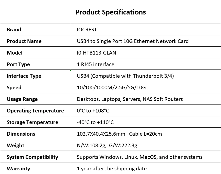 | Transfer Speed | 10Gbps |