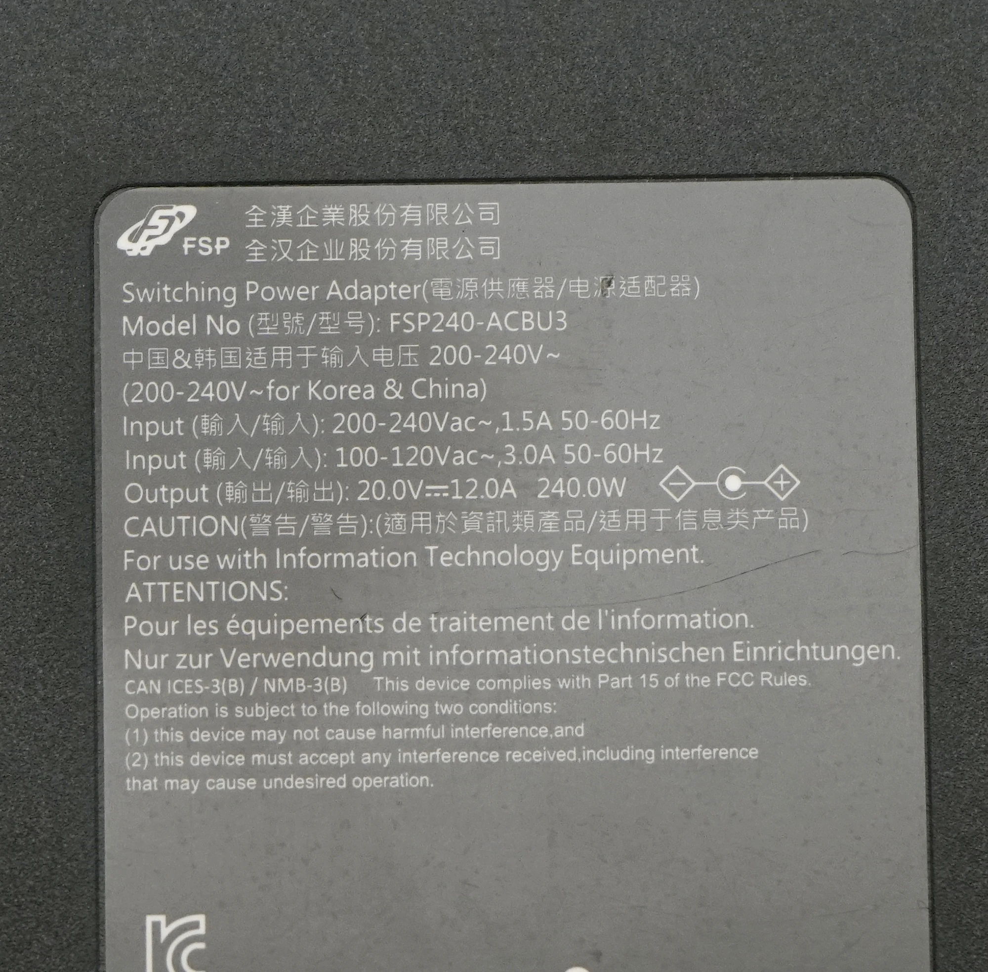 정품 FSP FSP240ACBU3 스위칭 POWER LOGIC 어댑터 20V 12A 240W 노트북 충전기 (Mechrevo PTEROSAUR 15 16 PRO E16S 호환, 5.5x2.5mm)