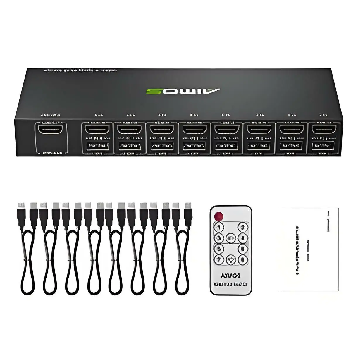 KVM 스위치에는 HDMI 소스 장치용 포트 그룹 8개가 있으며 각 그룹에는 HDMI 포트 1개와 USB - A 포트 1개가 포함되어 있습니다.올바른 기능을 보장하려면 HDMI 및 USB 케이블을 동시에 연결하십시오.