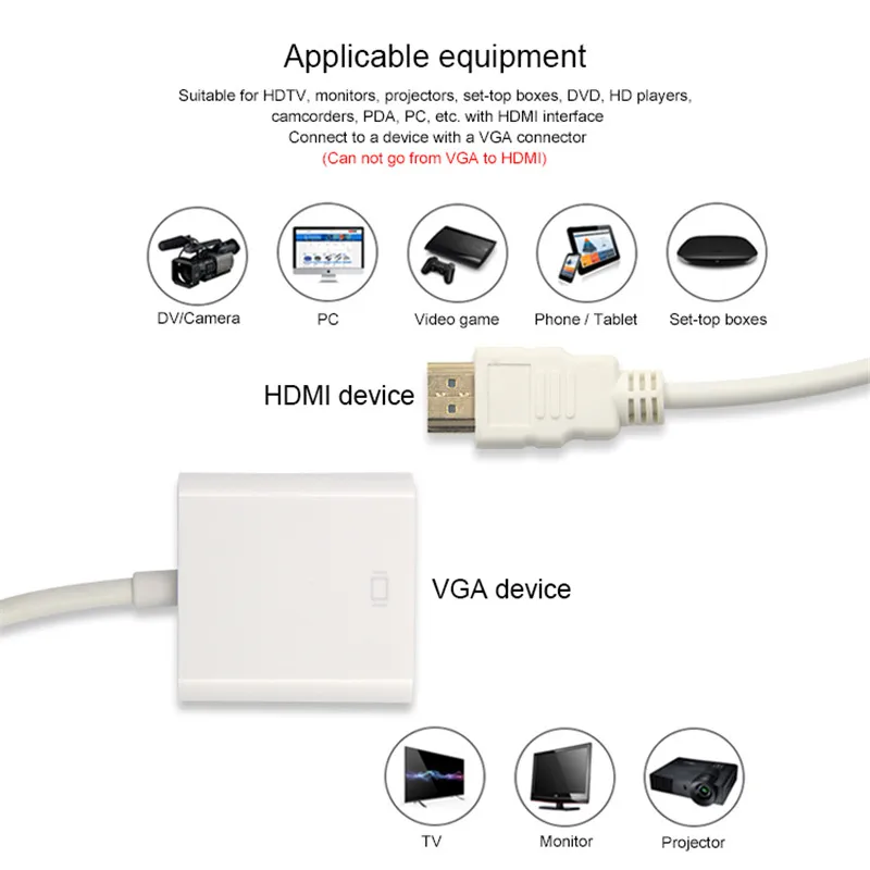 이것은 VGAHDMI 케이블이 아닌 HDMIVGA 어댑터입니다.먼저 PC DVD ps3 플스호환용 플스호환용 플스호환용 ps4 XBox360과 같은 HDMI 입력 장치에 연결한 다음 다른 VGA 쪽을 모니터나 프로젝터에 연결하세요.