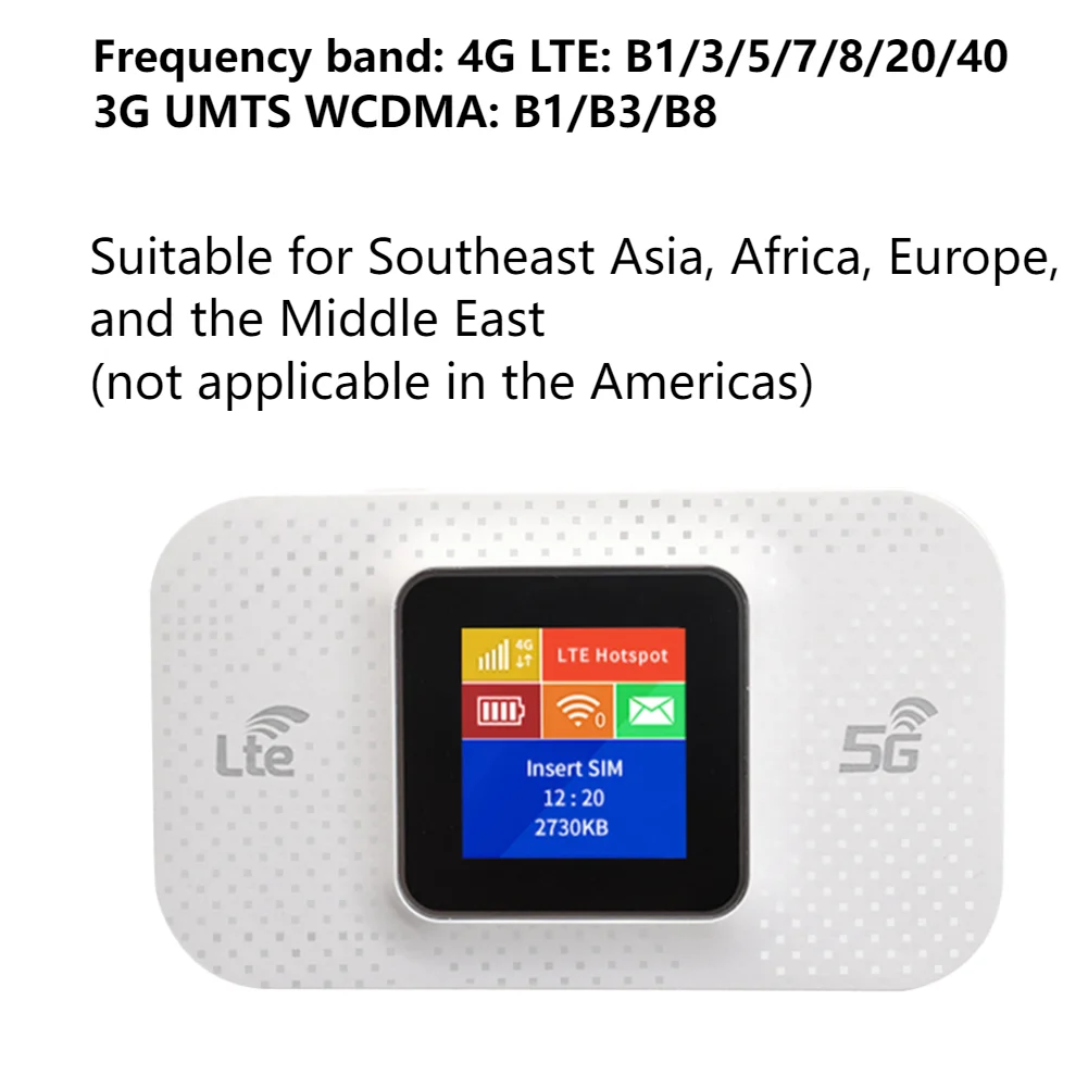 Feature: 1. Easy Setup: Setting up the 4G Lte WIFI router is straightforward. Simply slide down the back cover, insert the SIM card with the chip facing down, plug the USB port into A power source to get WiFi, and you're ready to connect to the internet. 2. Customizable WiFi Settings: Once connected to the WiFi, you can modify the WiFi name and password and add APN through A userfriendly browserbased backend accessible at 192.168.100.1, ensuring your network stays secure and personalized. 3. Frequency Band Verification: Before purchasing, customers can check the frequency band compatibility with their local region by visiting the provided links (Frequency Check, Network Bands, List of LTE Networks). This ensures the device will work seamlessly in the buyer'S location. 4. Manual Measurement: Please allow for A slight 01 cm difference due to manual measurement. Color variations may occur depending on light conditions and the way the listing is viewed. 5. Customer Appreciation: Your understanding and attention are greatly appreciated. We wish you A pleasant shopping experience! Specification: Origin: Mainland China Type: Wireless With Modem Function: Yes Color: black, white (optional) Frequency band: 4G LTE: B1/3/5/7/8/20/40 3G UMTS WCDMA: B1/B3/B8 Peak rate: 150Mbps download, 50Mbps upload WIFI: support 802.11b/G/N Sharing: 10 users Battery: 3650mAh lithium battery Standby time: more than 50 hours of standby, 78 hours of continuous working (individual operations vary, subject to actual conditions.) Antenna: builtin Input voltage: 100V~240V Output voltage: Output: 5V DC±10% Output current: 1.0A Language: Chinese and English (supports multilanguage customization) Product size: 104*64*25mm 4.09x2.52x0.98inch Net weight: 104g Packaging size: 140*120*30mm Gross weight: 142g Color: black, white (optional) Frequency band: 4G LTE: B1/3/5/7/8/20/40 3G UMTS WCDMA: B1/B3/B8 Peak rate: 150Mbps download, 50Mbps upload WIFI: support 802.11b/G/N Sharing: 10 users Battery: 3650mAh lithium battery Standby time: more than 50 hours of standby, 78 hours of continuous working (individual operations vary, subject to actual conditions.) Antenna: builtin Input voltage: 100V~240V Output voltage: Output: 5V DC±10% Output current: 1.0A Language: Chinese and English (supports multilanguage customization) Product size: 104*64*25mm 4.09x2.52x0.98inch Net weight: 104g Packaging size: 140*120*30mm Gross weight: 142g
