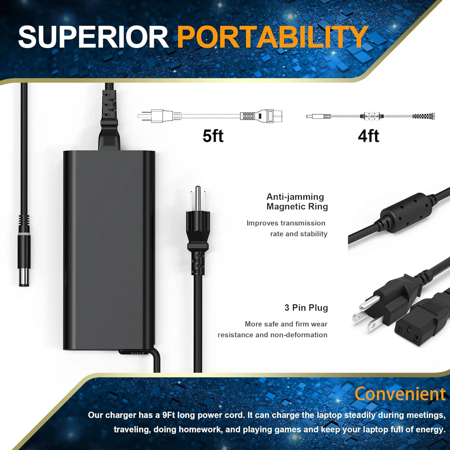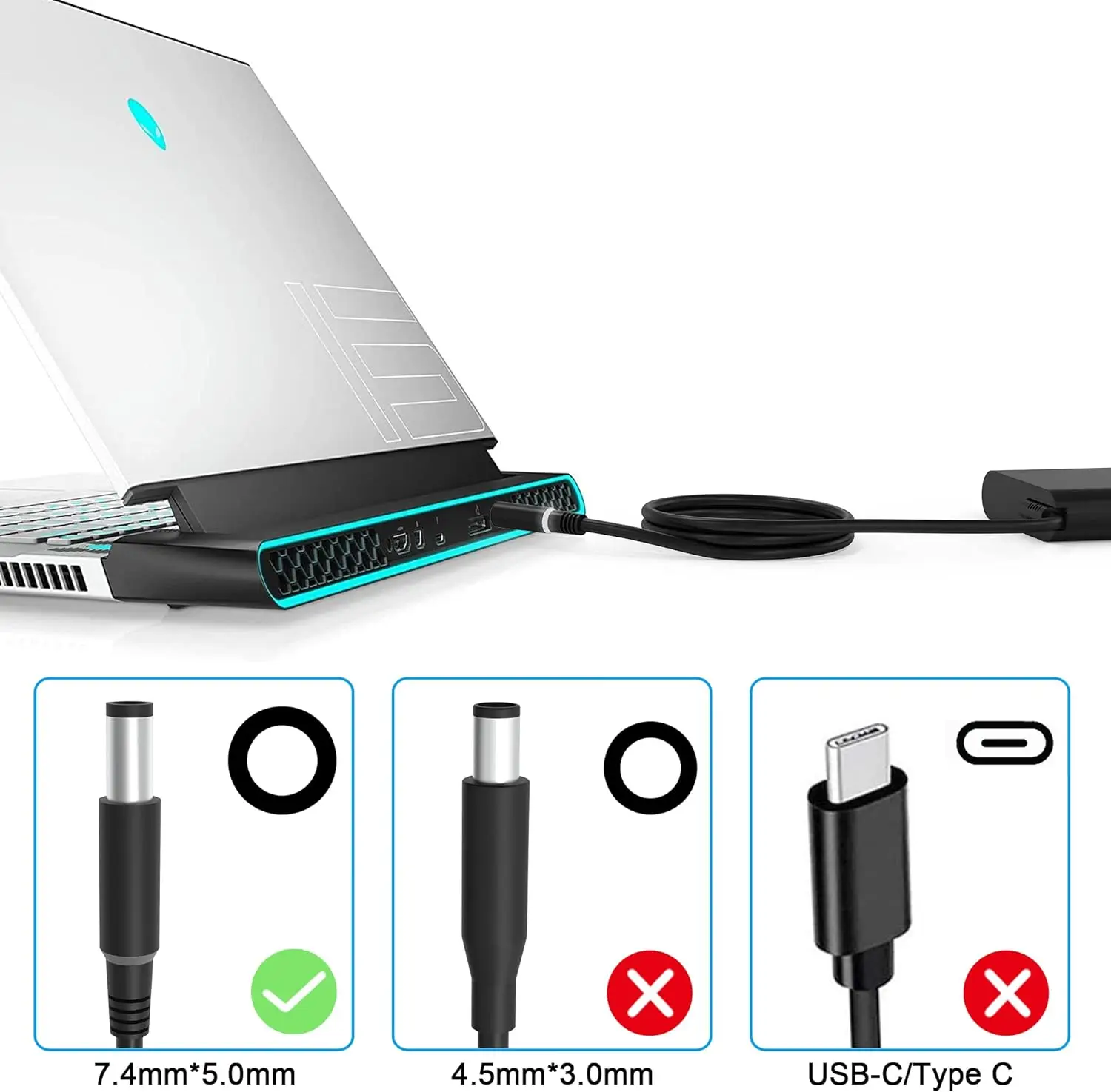 이 충전기는 다음의 180W 150W 130W 델 모델과의 호환성을 보장하기 위해 테스트되었습니다: Alienware m17X M18X X51 13 R3 M11x M13,Alienware 15 R2 R3 R4 M14X, 에일리언웨어 17 R3 R5 M17 ,Alienwarem15X, 에일리언웨어 Area51m, 에일리언웨어 m17 m17X