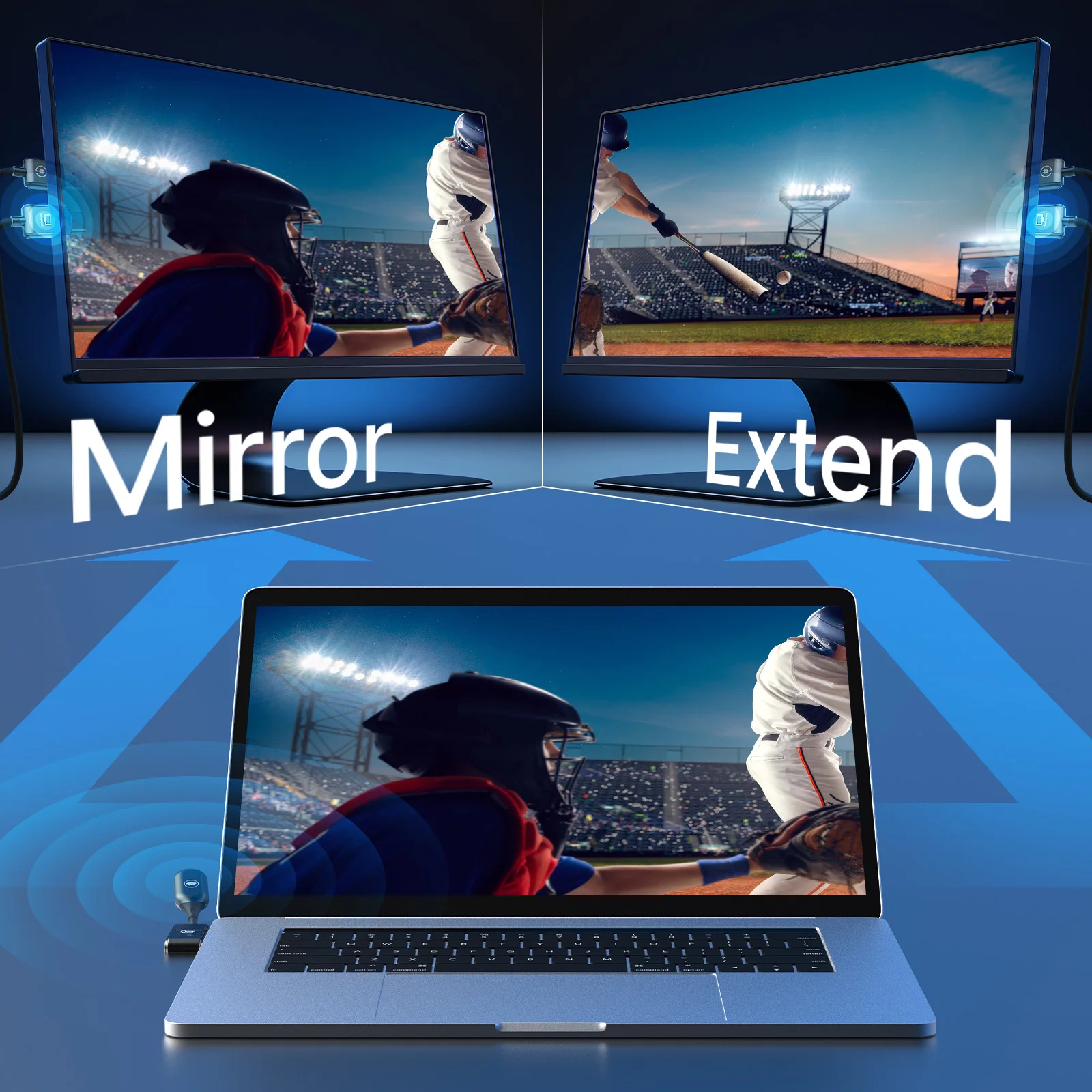 이 확장기는 모바일 장치 노트북에서 더 큰 화면으로 비디오 신호를 무선으로 전송할 수 있습니다.