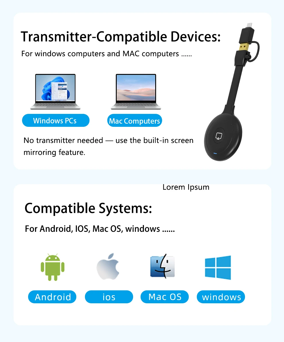 | Product name | Wireless Screen Mirroring Receiver with Transmitter Set |