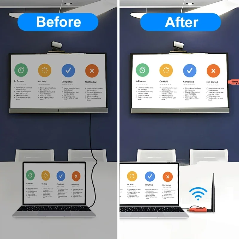 1.내장된 무선 전송 프로토콜을 통한 HDMI 비디오 및 오디오 전송, WiFi 또는 인터넷이 필요하지 않음