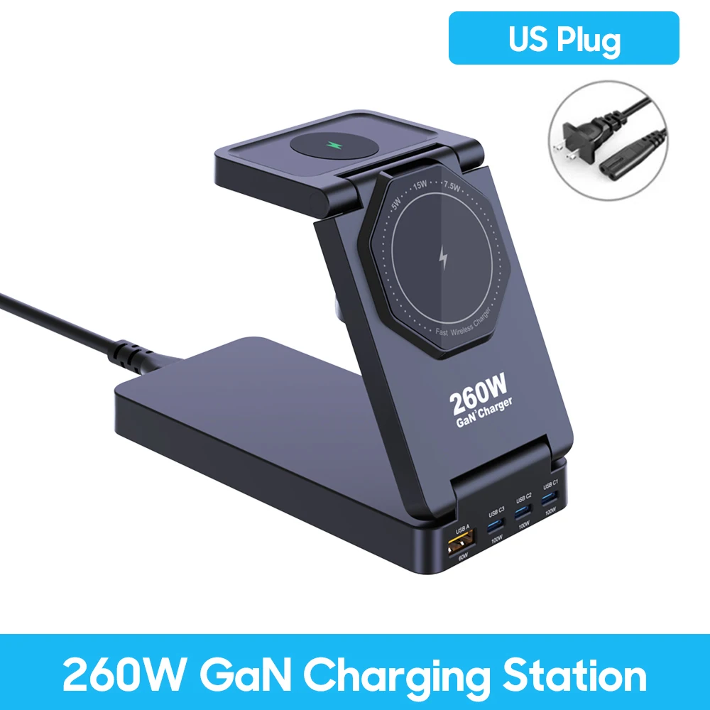 260W GaN 충전기 디지털 디스플레이 데스크탑 무선 충전 스테이션 100W PD PPS USB Type C 노트북 태블릿 전화 용 빠른 충전기