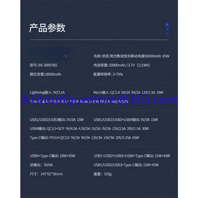 65W 모바일 POWER LOGIC 30000MA 대용량 휴대용 노트북 디지털 디스플레이 고전력 충전 고속