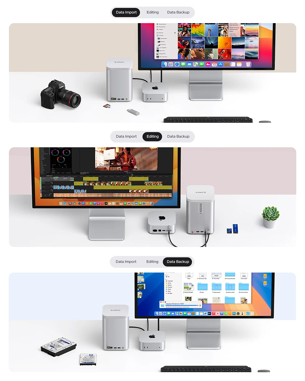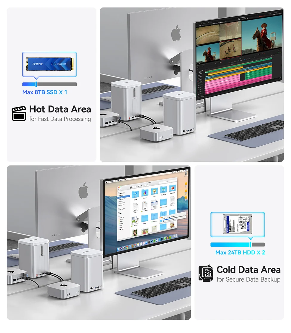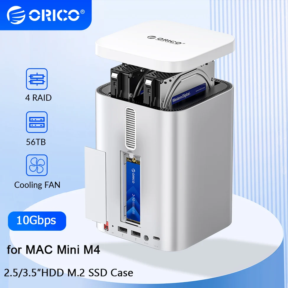 ORICO 2.5/3.5"HDD 케이스 10Gbps M2 NVMe SATA SSD 인클로저 USB 허브 도킹 스테이션 Mac Mini M4용 RAID DAS 하드 드라이브 보관함