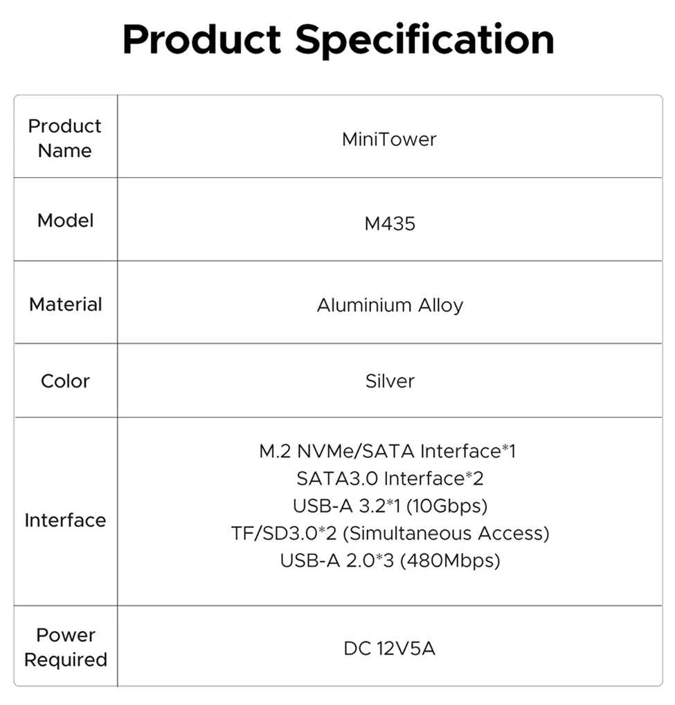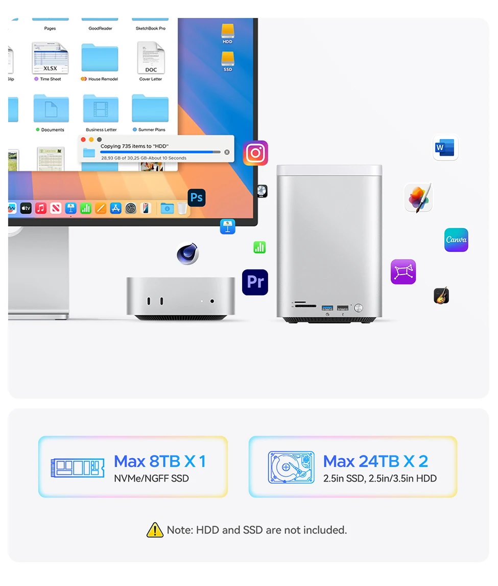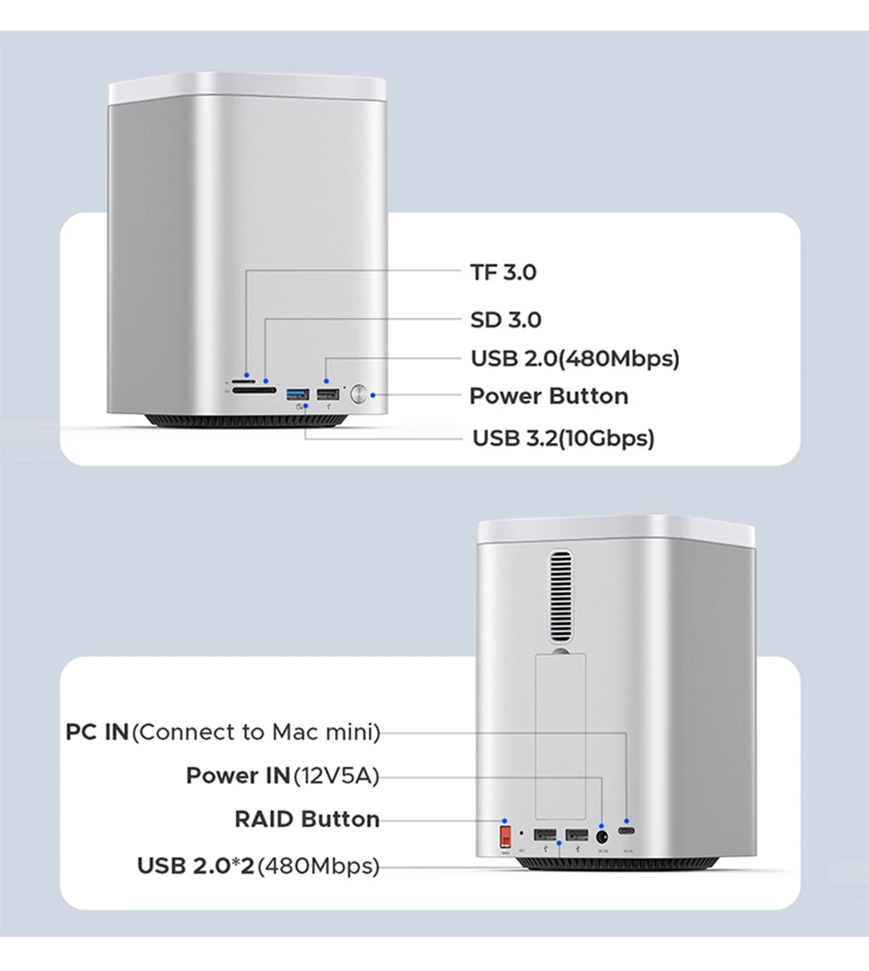 ORICO 2.5/3.5"HDD 케이스 10Gbps M2 NVMe SATA SSD 인클로저 USB 허브 도킹 스테이션 Mac Mini M4용 RAID DAS 하드 드라이브 보관함
