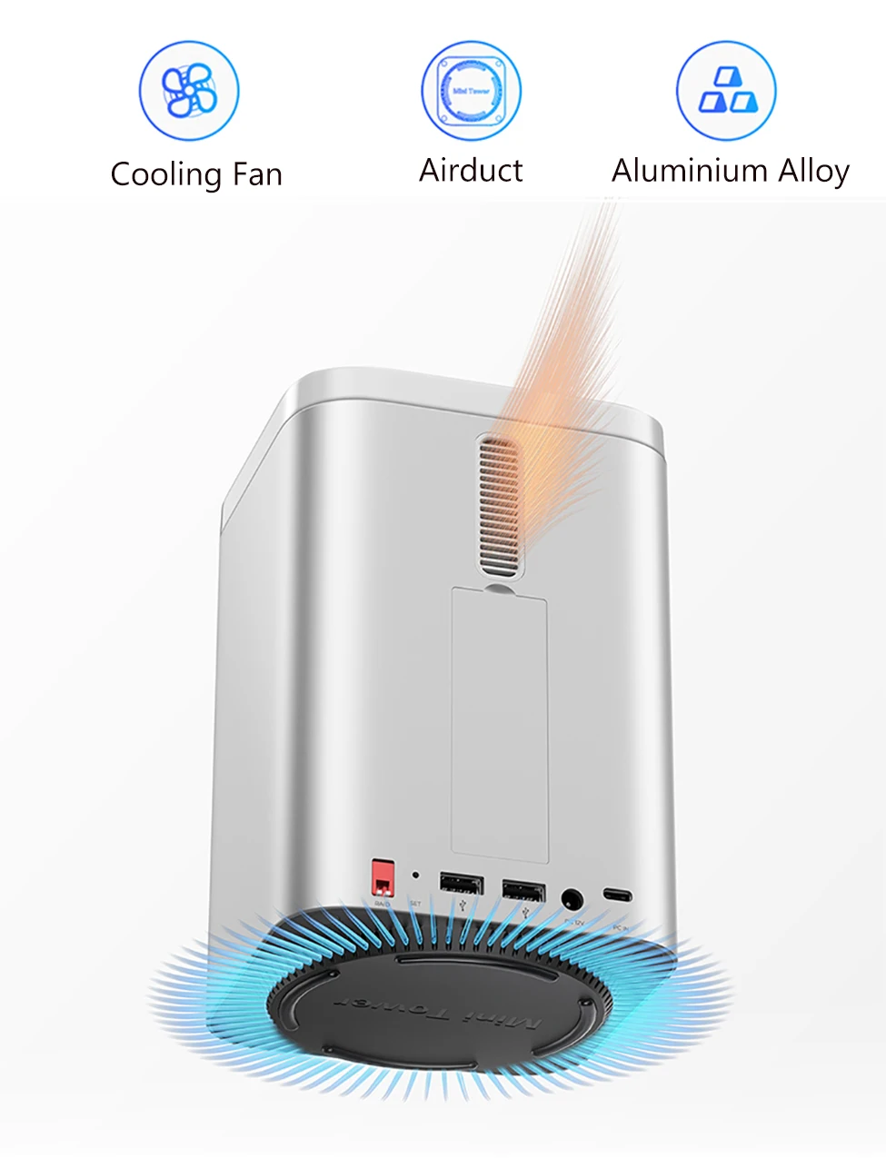 360도 조합된 대형 저소음 냉각팬 장착° 하단과 후면에 냉각 통풍구가 있어 빠른 공기 흐름을 달성하여 풀타워 냉각 시스템을 구성합니다.이를 통해 고속 연속 작동을 위해 하드 드라이브를 낮은 온도로 유지합니다.