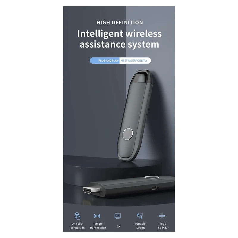 기술적인 매개변수;비디오;프로토콜: 1.4; 최대 지원 해상도: 4K@30Hz;인터페이스: 인터페이스;임피던스: 100;출력: (동기 오디오 및 비디오 출력);인코딩 형식: H.264;와이파이:2.4G+5G;프로토콜: 표준 802.11 A/B/G/N/ac;전송 거리: 개방형 환경에서 최대 50미터;POWER LOGIC 공급 장치: USB POWER LOGIC 공급 장치: 5V/2A;최대 전력 소비: 최대 3W;작동 온도/습도: 0°C50°C/10%-80% RH(비고화)
