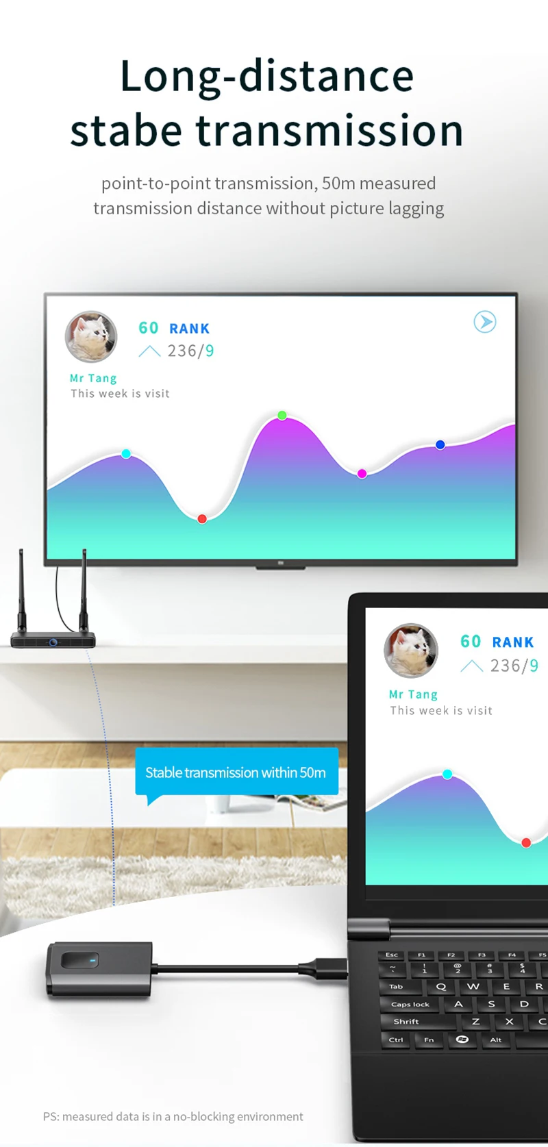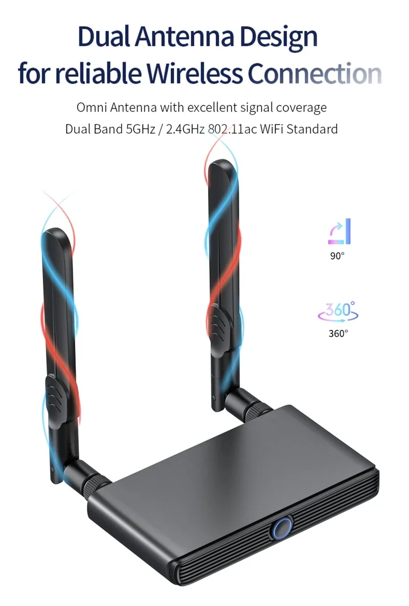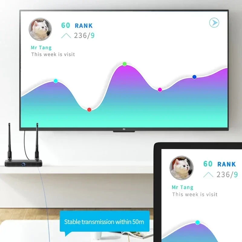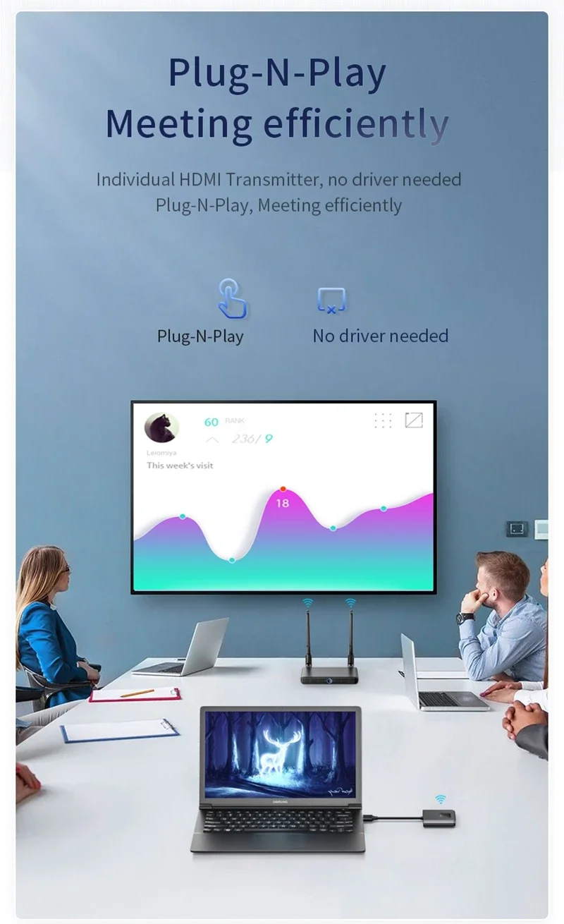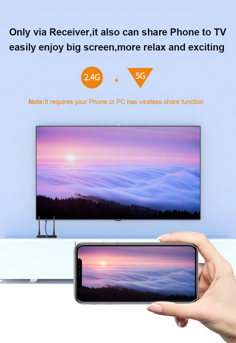 이 제품을 사용하면 TX (TV 박스/DVD/카메라/연결) 사이의 큰 화면 디스플레이를 쉽게 즐길 수 있습니다 노트북 PC/PS 등 HDMI 비디오 소스 장치) 및 RX (TV/모니터/프로젝터 등 연결) HDMI 디스플레이 장치) 는 HDMI 케이블없이 TX와 RX 사이의 무선 전송으로 비용을 절감합니다. 더 편리하고 깔끔합니다. 또한 장치가있는 한 수신기를 통해 휴대 전화 또는 노트북 PC를 TV로 미러링 할 수 있습니다 무선 공유 기능.