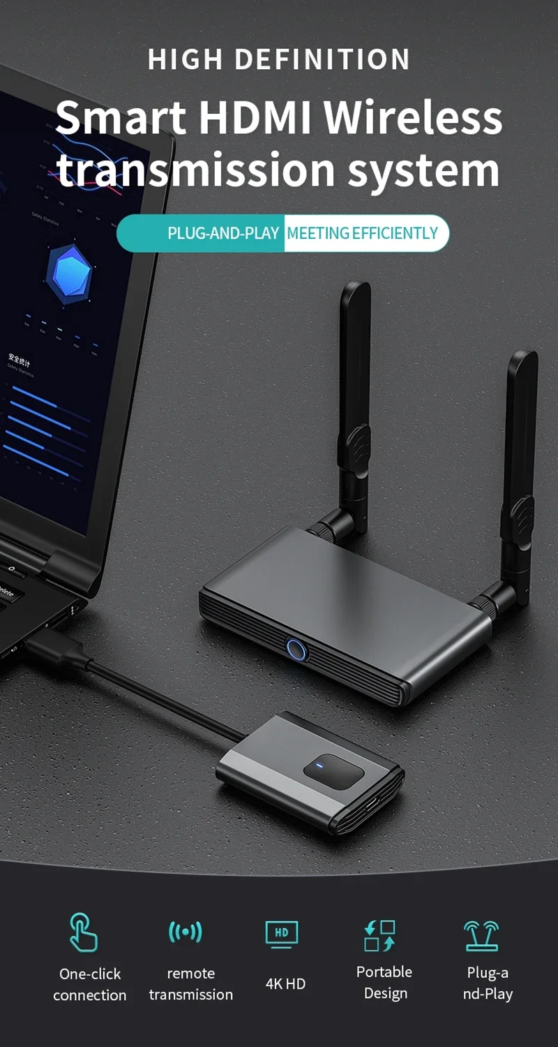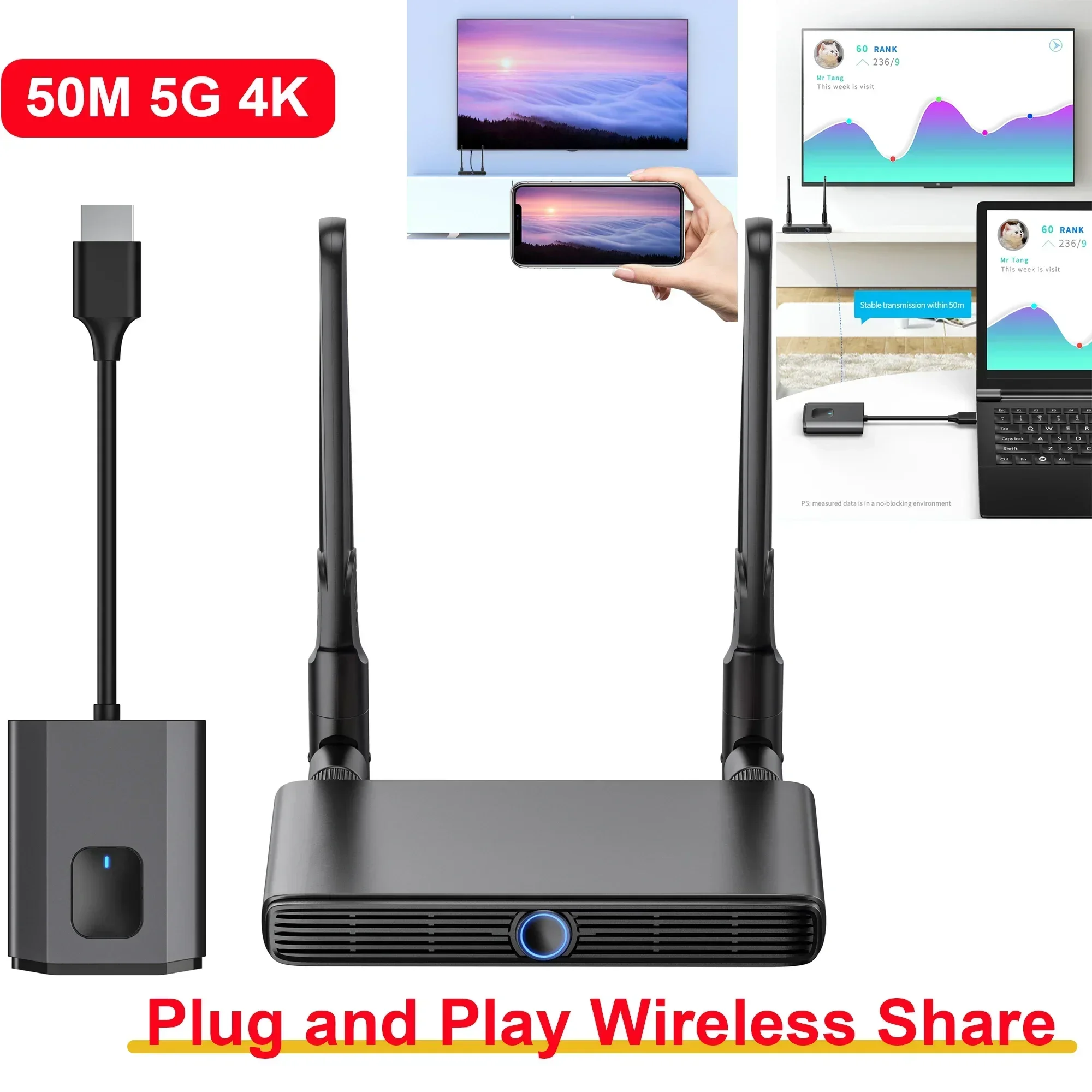 VGA 디스플레이 어댑터가 있 무선 HDMI 익스텐더 오디오 50m TV 프로젝터용 송신기 4K PC 노트북 리시버