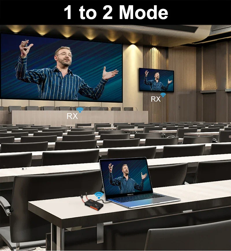 【300m 장거리】 1:1 모드에서 무장애 개방 공간에서 전송 거리는 최대 100m까지 가능합니다.