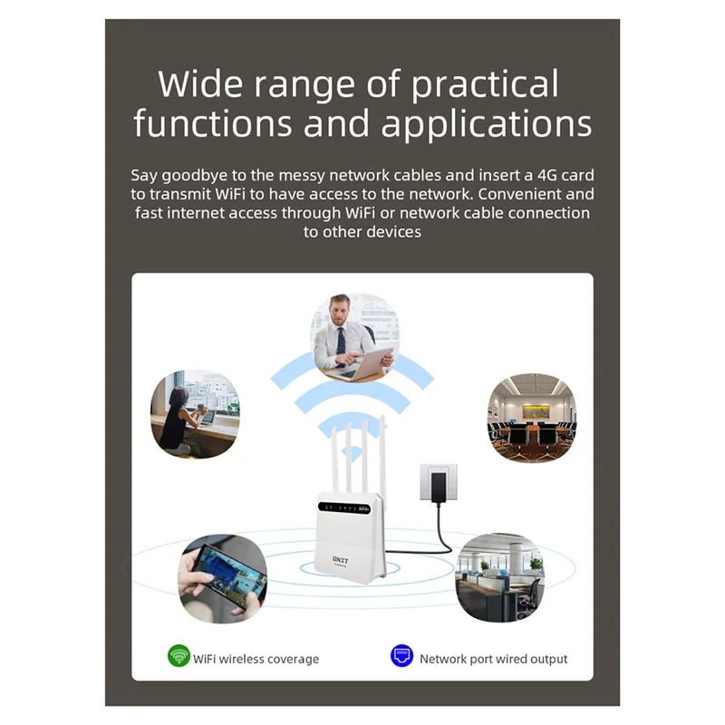 핫! DNXT 배터리 4G LTE CPE 5 포트 핫스팟 와이파이 라우터 노트북 광대역 모뎀 Sim 카드 4 안테나 EU 플러그