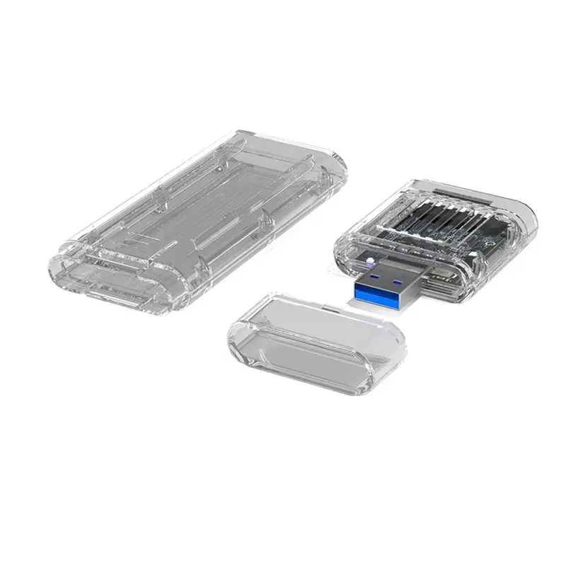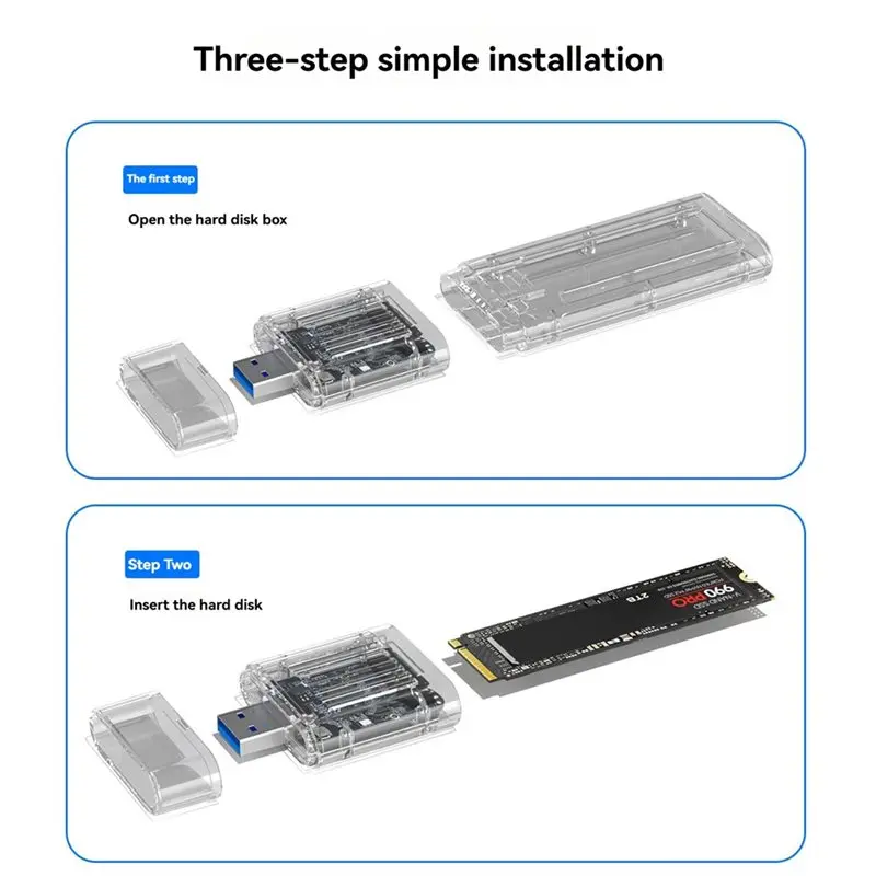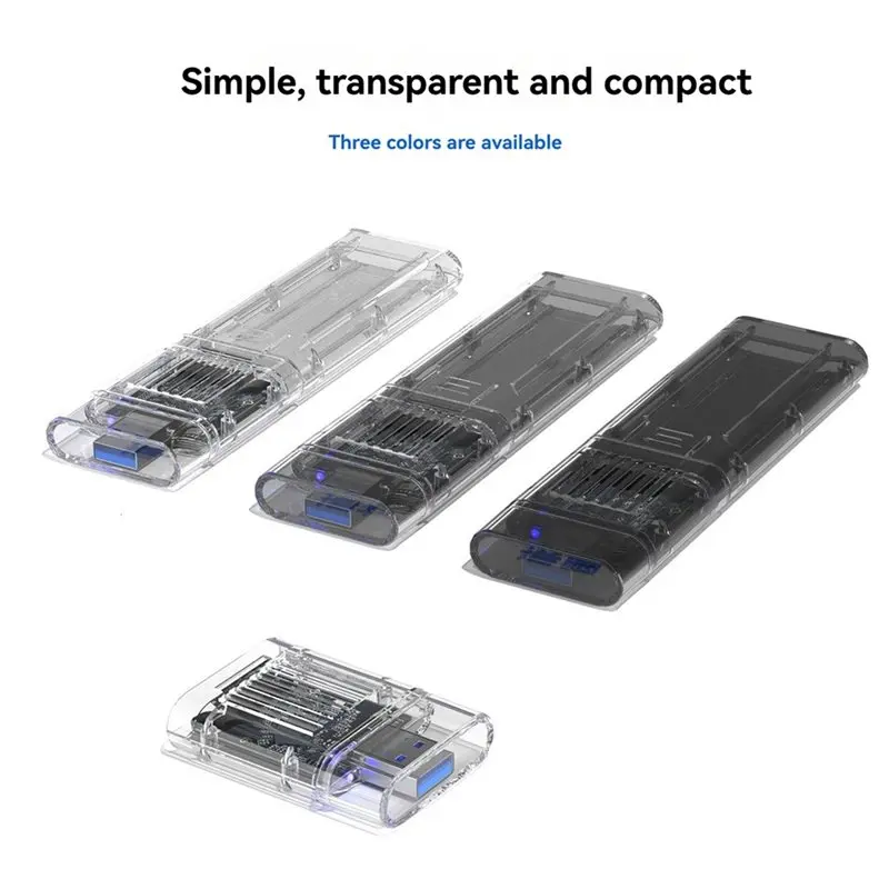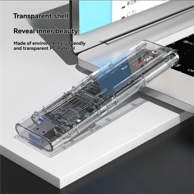 투명 케이스: 매끄럽고 투명한 디자인은 드라이브를 보호할 뿐만 아니라 하드웨어의 내부 작동 방식도 확인할 수 있습니다.