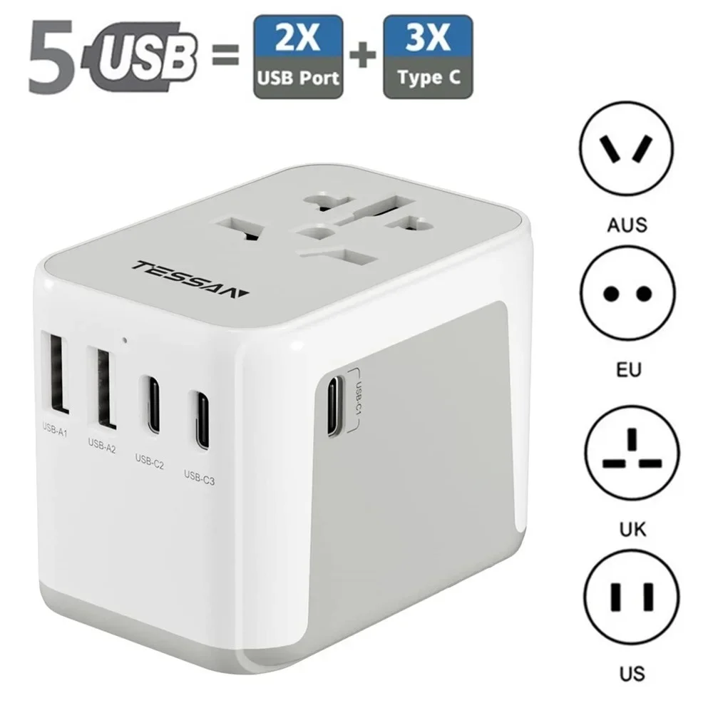 TESSAN 17W 21W 28W 범용 여행용 플러그 어댑터(2개의 USB 포트 포함) 유형 C 고속 충전 POWER LOGIC 어댑터 EU/UK/USA/AUS 플러그 어댑터