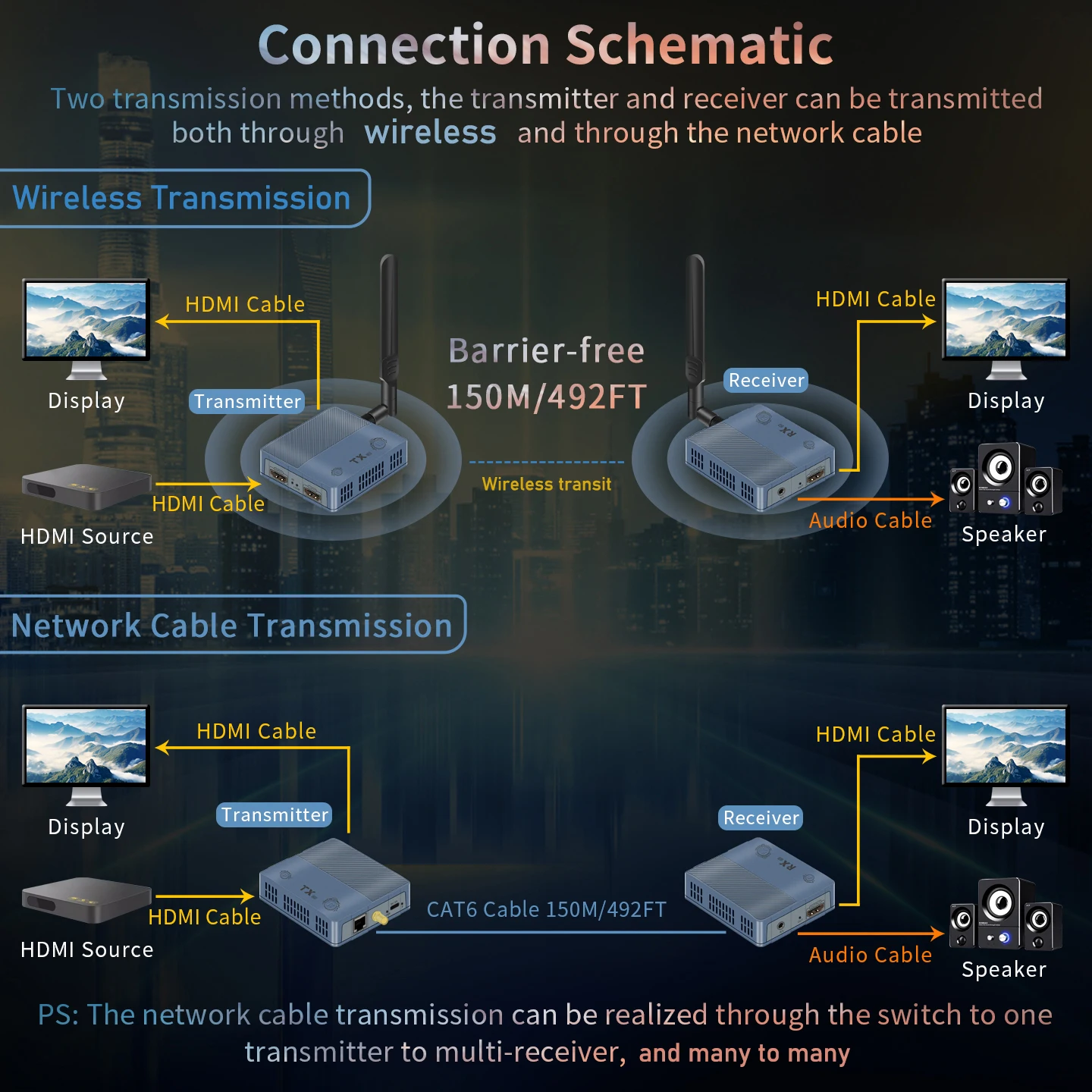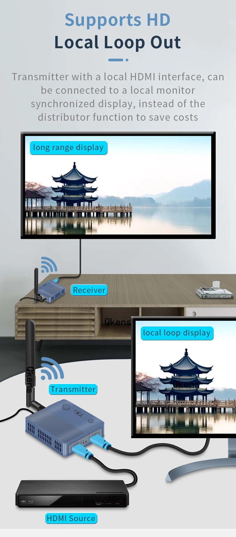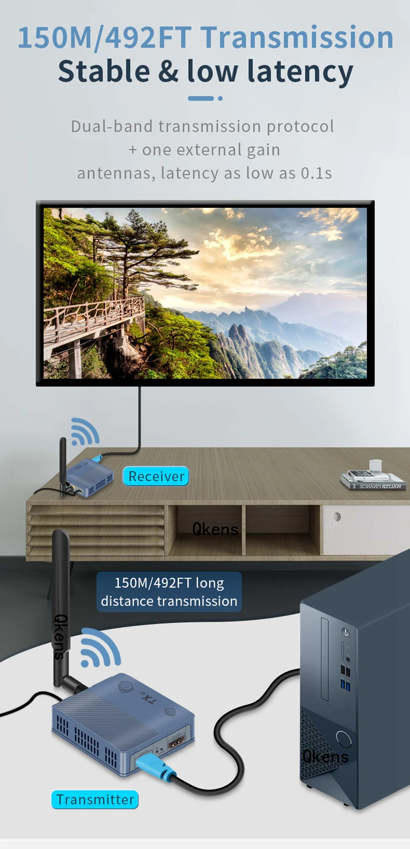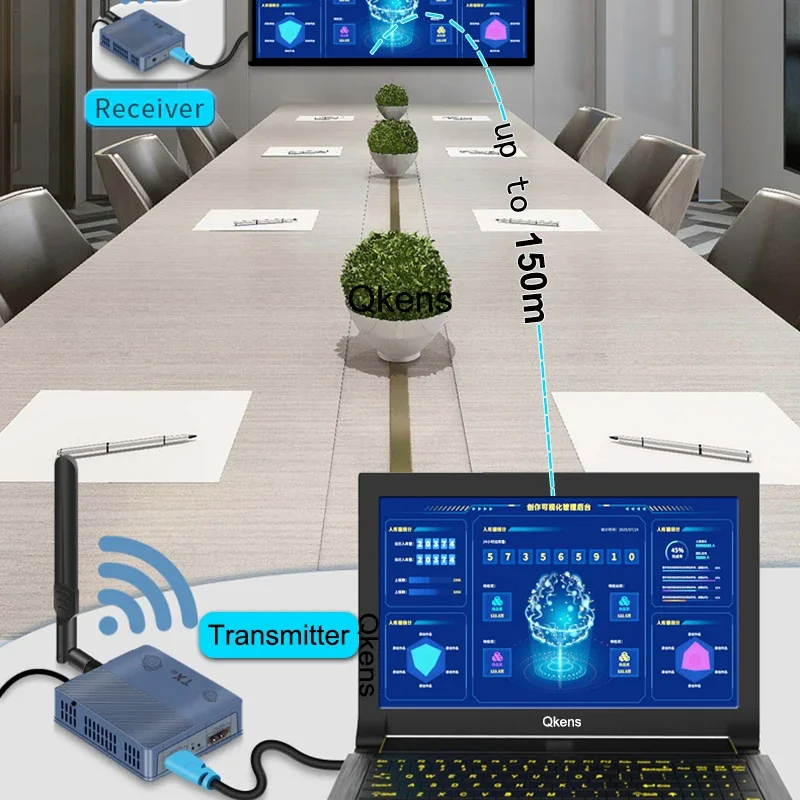 - 이 무선 송신기수신기는 H.265 디코딩을 업그레이드하여 노트북 화면을 쉽게 투사할 수 있습니다.