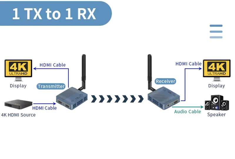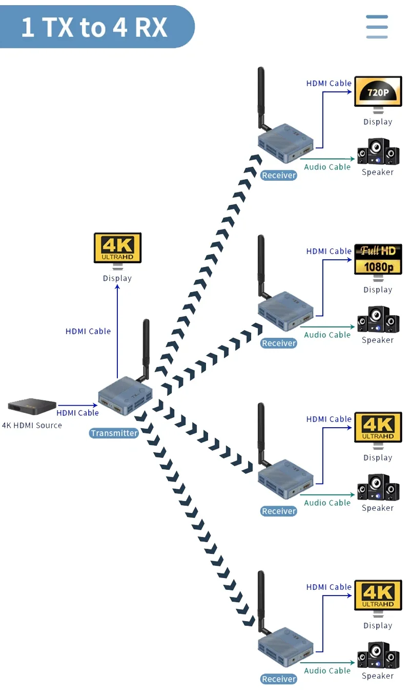 등.1080P 60Hz 또는 4K 30Hz 옵션을 지원하고 HDMI 오디오 및 비디오 동기화 전송을 지원합니다.