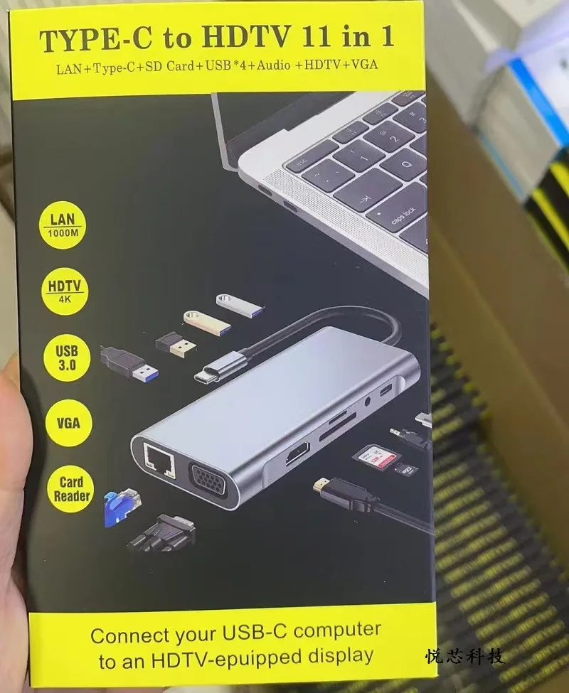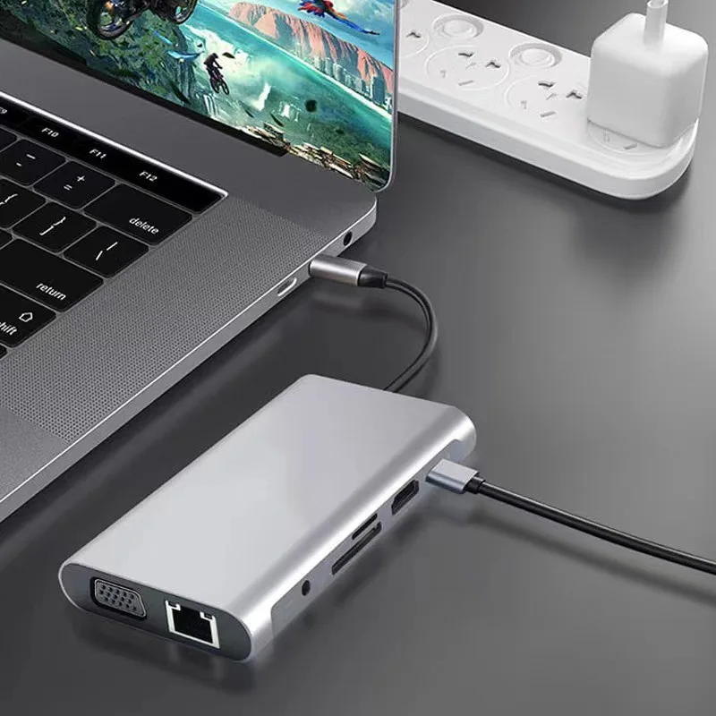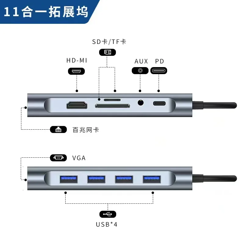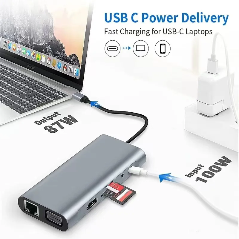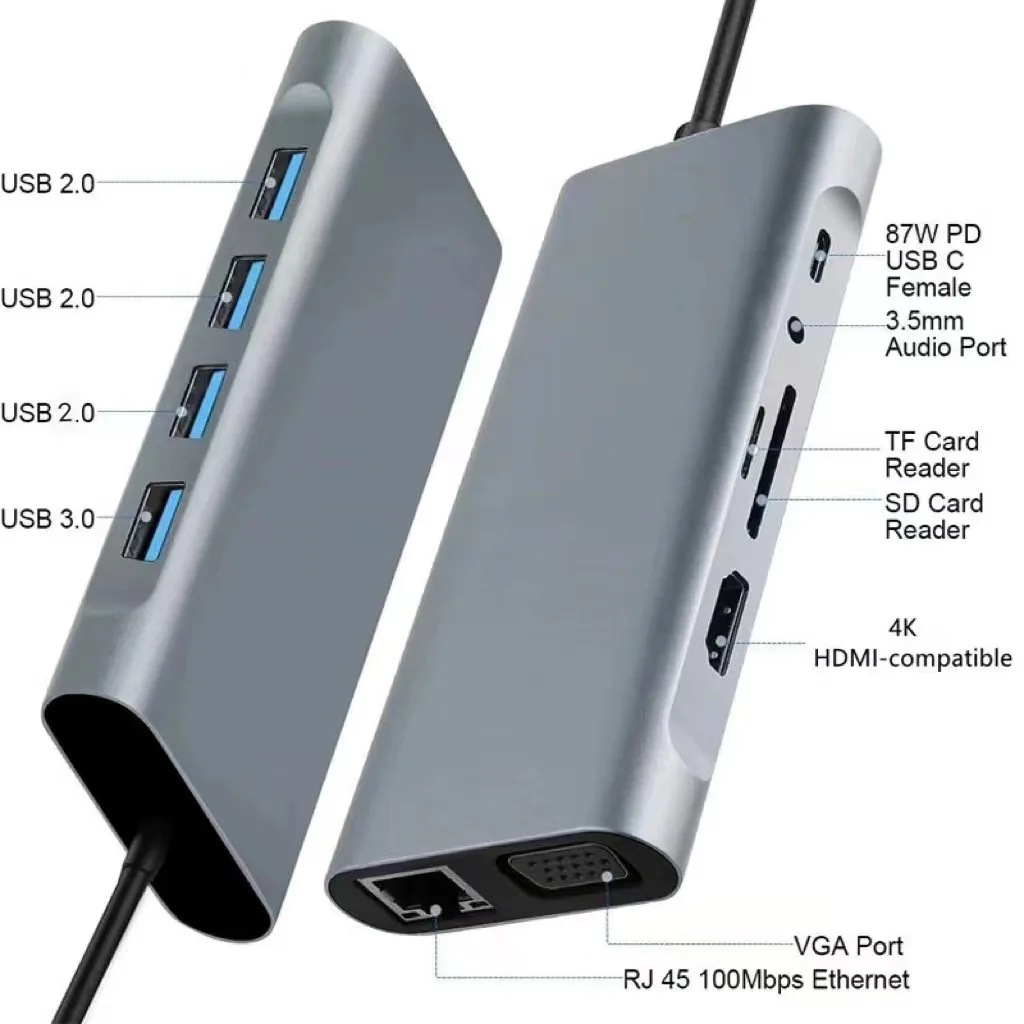 11 in 1 USB 허브 4K 30HZ PD87W 100MB/1000MB 네트워크 카드 유형 C 허브