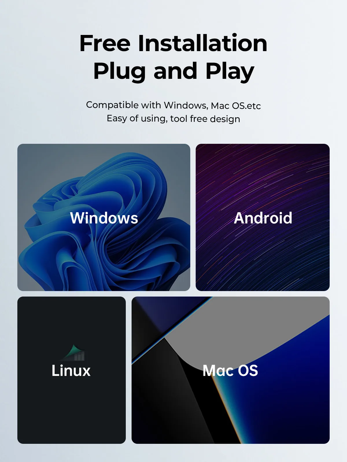 Windows, Mac OS, Linux, Android.