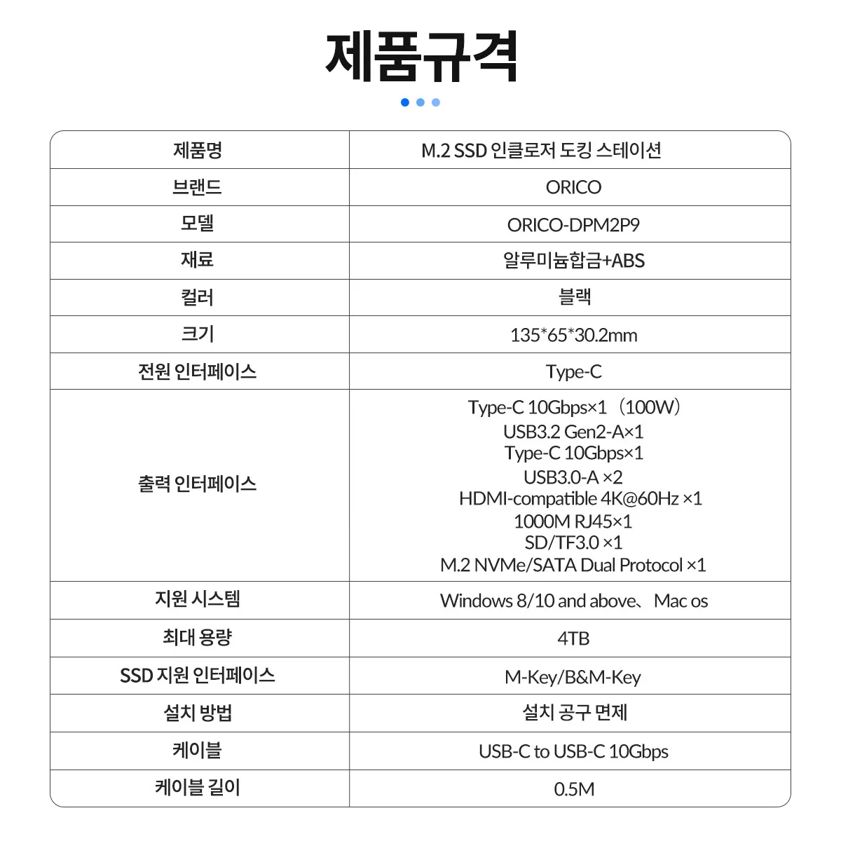 | 모델 번호 | ORICO DPM2P9 |