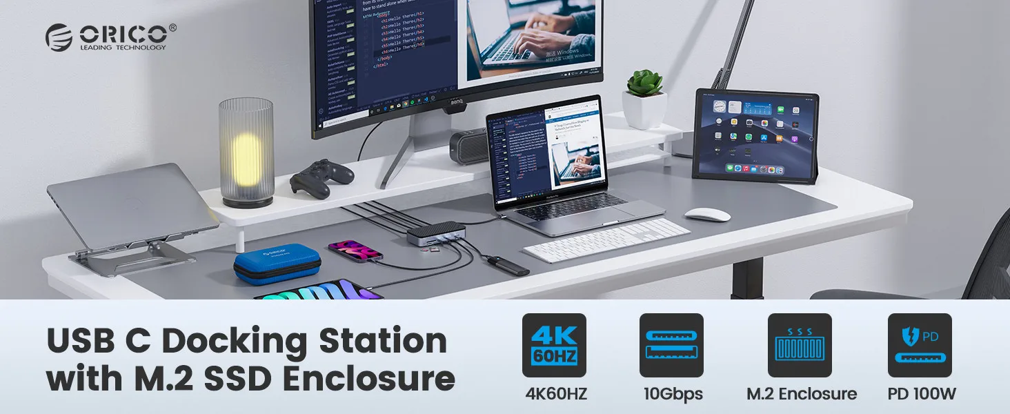 이 오리코 도킹 스테이션은 스토리지 및 확장 요구사항, 스토리지 및 확장 2in1을 위해 설계되었습니다. 10in1 확장 인터페이스로 다양한 확장 요구 사항을 충족합니다.