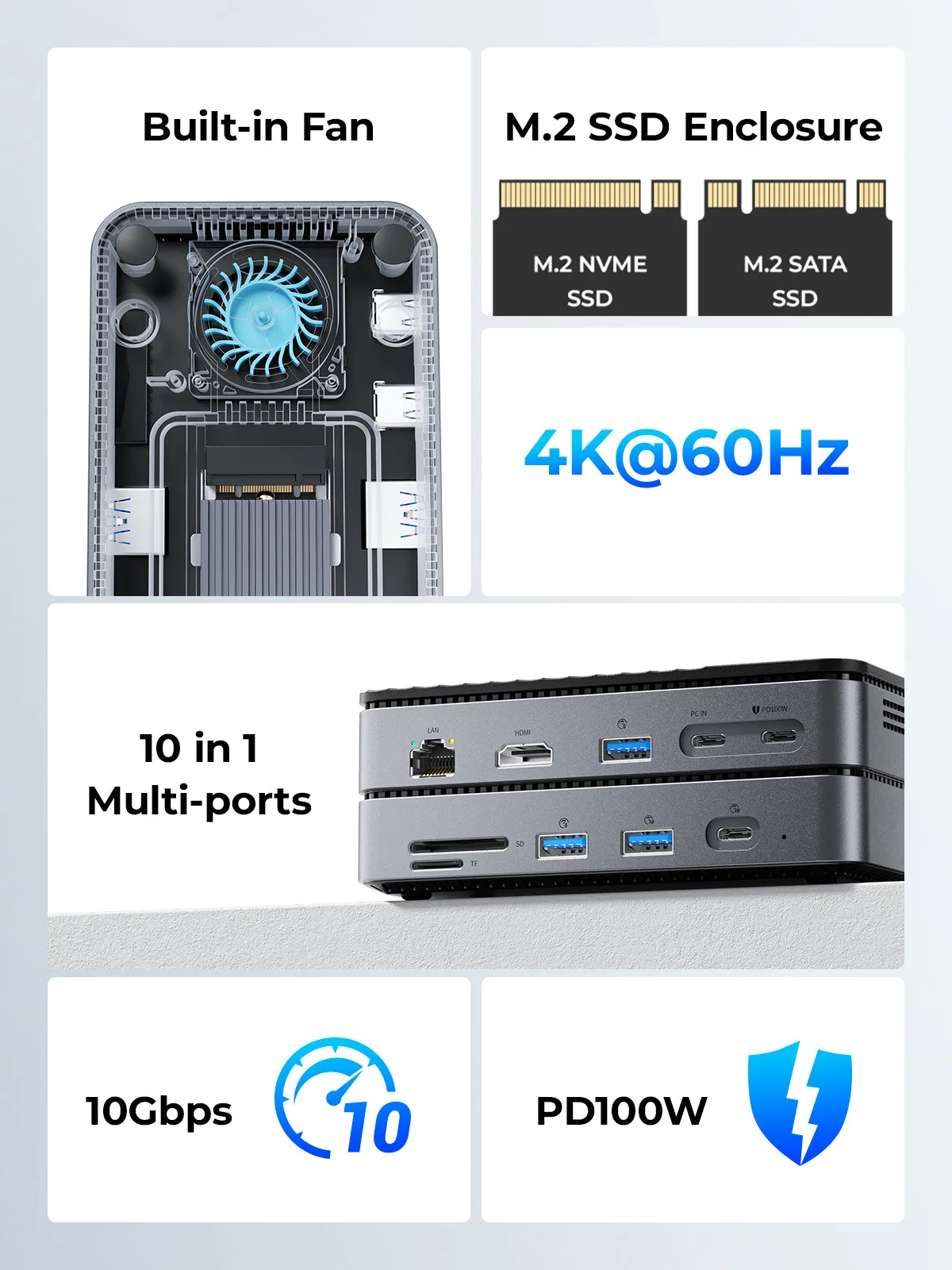 왜 쿨링팬 M.2 SSD 인클로저가 장착된 ORICO 10 in 1 도크 스테이션을 선택해야 할까요?