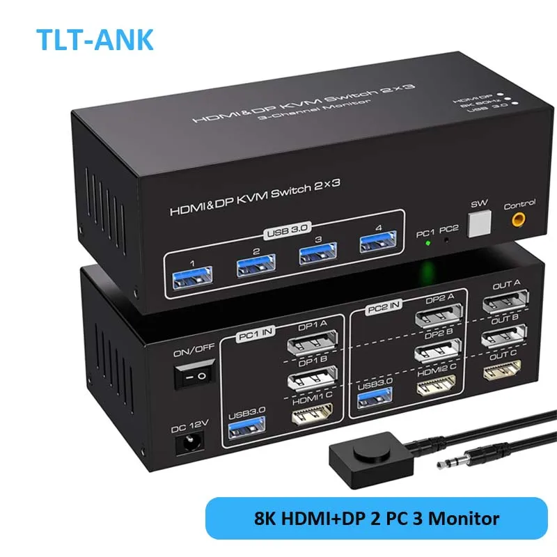 HDMI DP KVM 스위치 모니터 3개 컴퓨터 2 스위처 8K60HZ 및 0 공유 USB 3 4K120HZ 4개 대용