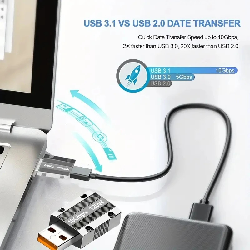 【120 W 고속 충전 지원】 최대 20V/6A 의 출력을 지원합니다. 고속 충전 USB 유형 C 암USB A 수 어댑터.