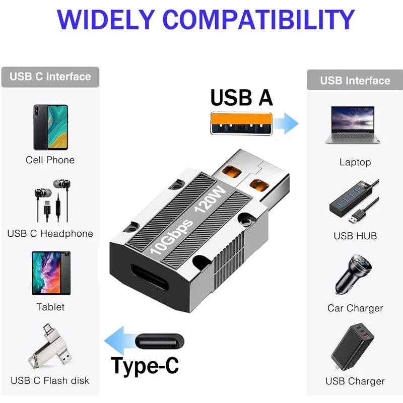 【넓은 호환성】 USB 포트를 USB C 포트로 전환하여 USB C 주변 장치를 USB A 포트가 내장 된 장치에 연결합니다. 전화, 노트북, PC, 충전기, 플래시 드라이브, 보조베터리 등과 호환됩니다.