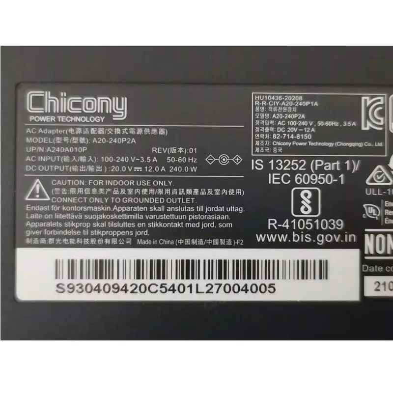 정품 CHICONY 20V 12A 240W 4.5x3.0mm AC DC POWER LOGIC 어댑터 A20240P2A A240A010P MSI 노트북 POWER LOGIC 공급 장치 충전기