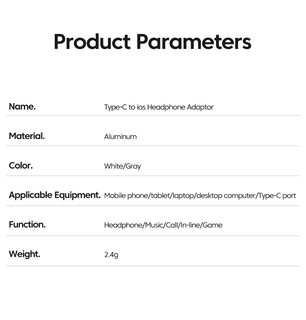 | Feature 5 | IOS Female to Type C Male |
