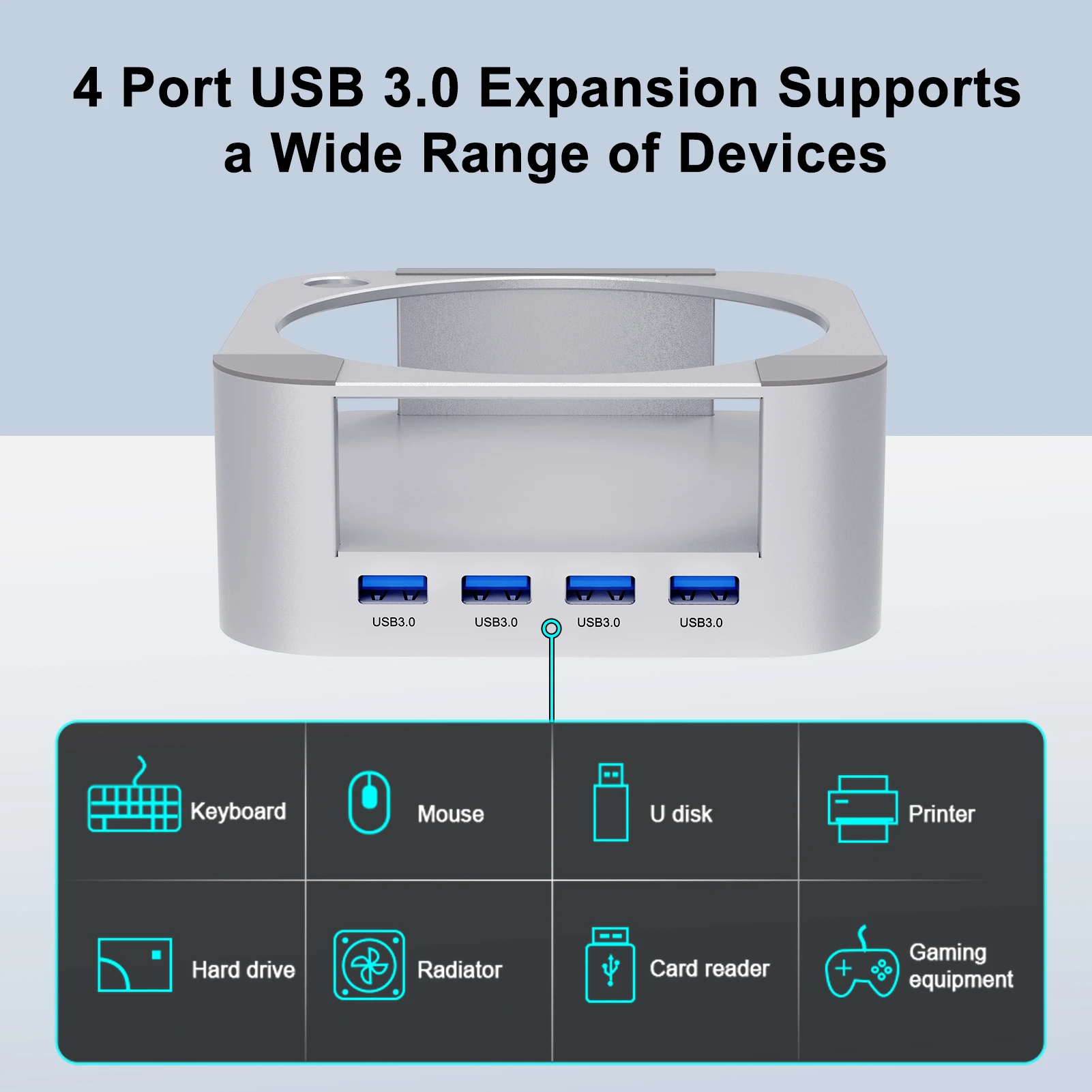 Mac 미니 M4/M4 Pro 스탠드용 Mac 미니 USB C 허브 인클로저 Brack seport USB3