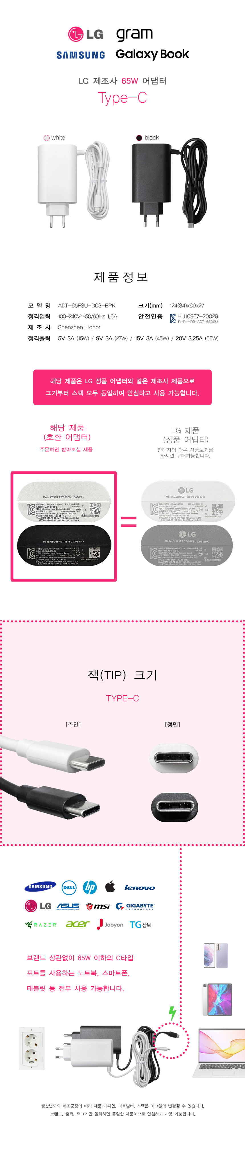 LG 그램 C타입 65W 호환 어댑터 ADT-65FSU D03-EPK